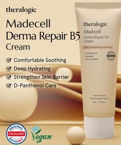 Theralogic’s Madecell Derma Repair B5 Cream es una crema facial innovadora que ofrece beneficios excepcionales de cuidado de la piel. Con una fórmula avanzada que combina dexpantenol alemán, madeecasoside y otros ingredientes ricos, esta crema se destaca por su capacidad para calmar la piel sensible, hidratar intensamente y reparar rápidamente la barrera cutánea.
