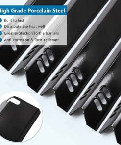 Materiales: Acero Porcelanizado. Tamaño: 15 pulgadas de largo, 3 13/16 pulgadas de ancho. Paquete incluye: Placas de calor de barbacoa de acero porcelanizado x5.