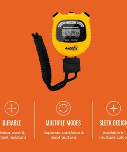 Este cronómetro de grado comercial está calibrado láser para garantizar alta precisión de 1/100 de segundo. El diseño resistente y duradero es resistente al agua, polvo y golpes. El modo Time-Out cuenta con botones de inicio/parada y reinicio separados, mientras que el modo Split cronometra eventos individuales y múltiples, congelando la pantalla de tiempo intermedio mientras el tiempo total continúa. La función de tiempo/calendario muestra la hora, minutos, segundos, fecha, día y alarma. El Adanac 3000 tiene una pantalla grande, botones suaves al tacto e incluye un llavero de 46″ que es cómodo alrededor del cuello, lo que le permite agarrar y soltar el cronómetro fácilmente en lugar de intentar torpemente alcanzar su teléfono. Marathon, una empresa familiar, ha estado fabricando instrumentos de sincronización de precisión desde 1941, combinando la sensibilidad de diseño moderno con la ingeniería y artesanía suiza para garantizar productos de la más alta calidad.