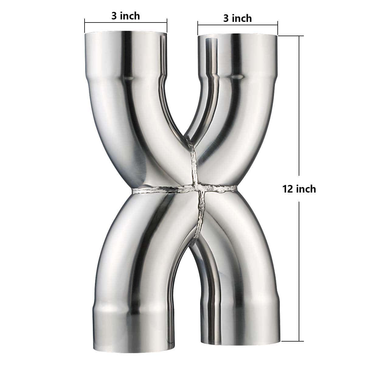 1. Tubo de escape X de 3″ de entrada, 12″ de longitud total.