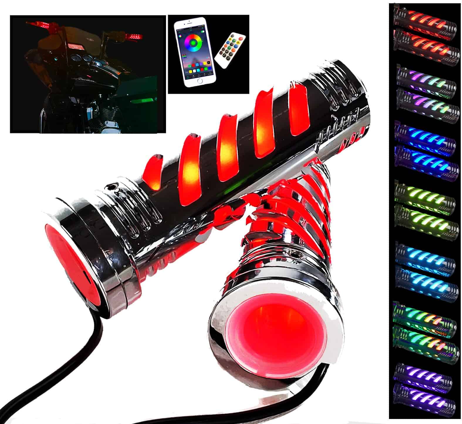 1. Agarres iluminados: Luces LED RGB multicolores integradas en los agarres de motocicleta proporcionan una mayor visibilidad y un brillo elegante.