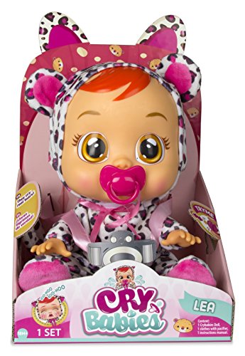 ¡Conoce a Cry Babies Lea, la bebé más llorona! Si le quitas el chupete, hará sonidos de bebé realistas y llorará lágrimas reales. ¡Devuélvele el chupete o mézclala para que deje de llorar!