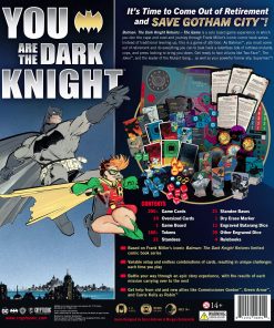 Batman: The Dark Knight Returns – The Game es una experiencia de juego de mesa en solitario en la que te pones la capa y la capucha y viajas a través de la icónica serie de cómics de Frank Miller. En lugar de subir de nivel tradicional, este es un juego de desgaste. Como Batman, debes salir de tu retiro y hacer todo lo posible para repeler una marea implacable de mutantes despiadados, policías y prensa que buscan derribarte. ¡Prepárate para enfrentarte a villanos como Dos Caras, El Joker y el líder de la pandilla de mutantes, así como tu poderoso ex aliado, Superman!