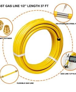 CSST Tubo de Acero Inoxidable Corrugado de 37 pies 1/2″ Línea Flexible de Gas Natural Kit de Conversión de Propano Manguera de Parrilla con Adaptador Macho Fittings