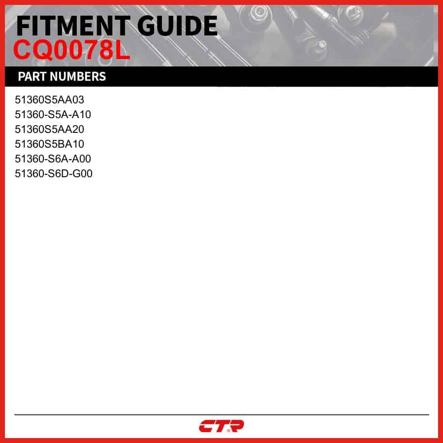 3. Reemplaza 51360S5AA03, 51360-S5A-A10, 51360S5AA20, 51360S5BA10, 51360-S6A-A00, 51360-S6D-G00, CK640288, RK640288, 30426, 42126, 42193 | ASEGÚRESE DE QUE ESTE NÚMERO DE PARTE SE AJUSTE A SU VEHÍCULO ANTES DE COMPRAR.