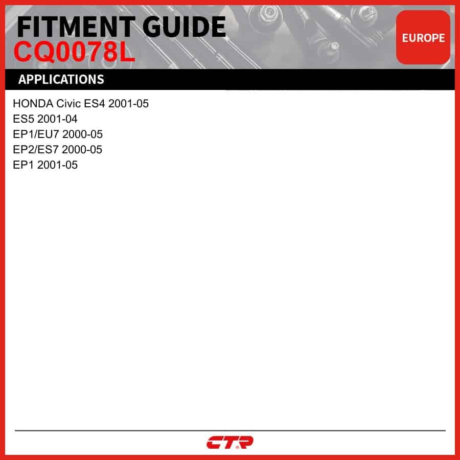 2. Para la Región Europea: Compatible con Honda Civic Es4 2001-05, Es5 2001-04, Ep1/Eu7 2000-05, Ep2/Es7 2000-05, Ep1 2001-05.