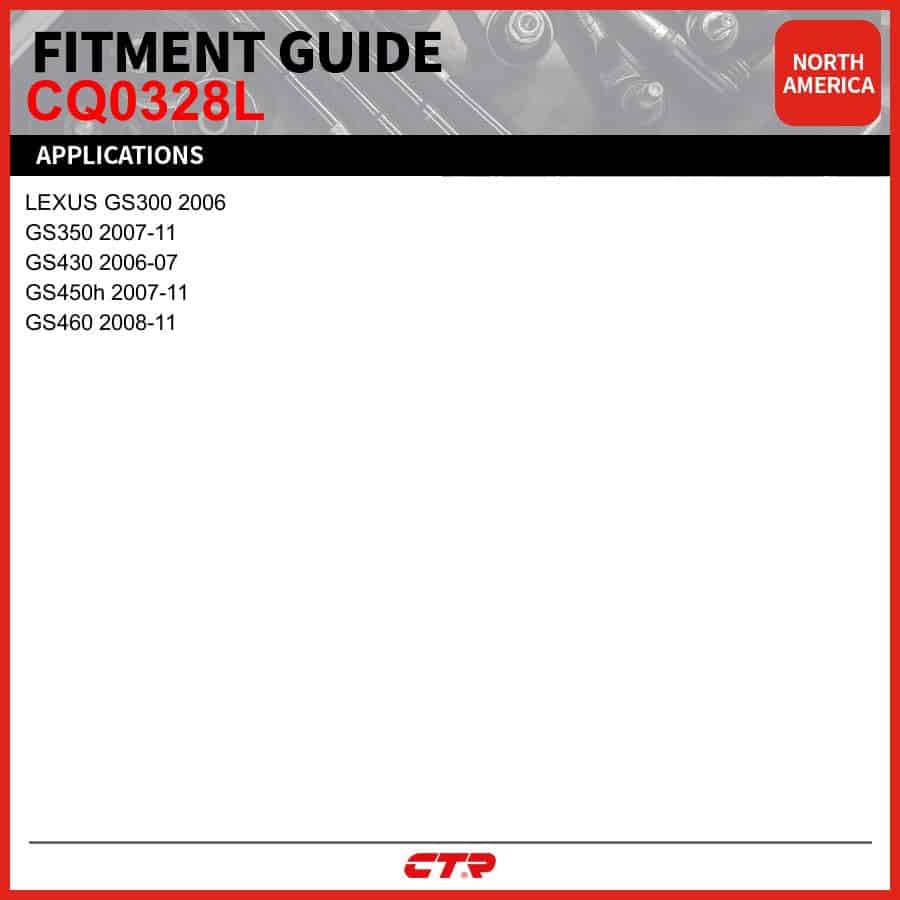 1. Para la Región de EE. UU .: Compatible con Lexus Gs300 2006, Gs350 2007-11, Gs430 2006-07, Gs450H 2007-11, Gs460 2008-11.
