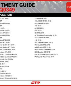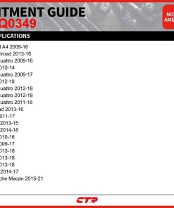 1. Para la región de EE. UU.: Compatible con Audi A4 2009-16, A4 Allroad 2013-16, A4 Quattro 2009-16, A5 2010-14, A5 Quattro 2009-17, A6 2012-18, A6 Quattro 2012-18, A7 Quattro 2012-18, A8 Quattro 2011-18, Allroad 2013-16, Q5 2011-17, Rs5 2013-15, Rs7 2014-18, S4 2010-16, S5 2009-17, S6 2013-18, S7 2013-18, S8 2013-18, Sq5 2014-17, Porsche Macan 2015-21. 2. Para la región de Europa: Compatible con Audi A4 8K5 2008-, 8K2 2007-; A4 Quattro 8K5 2008-, 8K2 2007-; A5 8T3 2007-; A5 Quattro 8T3 2007-; S5 Quattro 8T3 2007-; S4 Quattro 8K5 2009-, 8K2 2009-; Q5 Quattro 8Rb 2008-; A5 Cabrio 8F7 2009-; A5 Cabrio Quattro 8F7 2009-; S5 Cabrio Quattro 8F7 2009-; A4 Allroad Quattro 8Kh 2009-; A5 Sportback 8Ta 2009-; A5 Sportback Quattro 8Ta 2009-; S5 Sportback Quattro 8Ta 2010-; A8 Quattro 4H2/4H8 2009-, 4H2/4H8/4Hl 2010-, 4H8/4Hl 2011-, 4H2/4Hc/4Hl 2010-, 4H8 201. 3. Reemplaza 8K0501529L | ASEGÚRESE DE QUE ESTE NÚMERO DE PARTE SE AJUSTE A SU VEHÍCULO ANTES DE COMPRAR. 4. FABRICADO POR UN PROVEEDOR OE COREANO Productos de alta calidad para su módulo de suspensión, fabricados con orgullo por CTR, con materiales de primera calidad y estándares de precisión superiores para asegurar que sus necesidades sean satisfechas para su vehículo. CTR utiliza una base de bola de polímero especialmente diseñada, lo que resulta en un rendimiento duradero gracias al bajo daño por fricción y baja variación de torque. ADVERTENCIA: Este producto puede exponerlo a productos químicos como el negro de carbono, que según el Estado de California causa cáncer. 5. El brazo de control, también conocido a veces como brazo A, trapecio, brazo lateral, brazo de arrastre o brazo de enlace, dependiendo del vehículo, posición de la parte y función, ensambla la junta esférica y el casquillo en un cuerpo de alta resistencia. El casquillo de goma fija de manera segura el cuerpo del vehículo y el brazo de control absorbe los golpes que se producen durante el funcionamiento del vehículo.