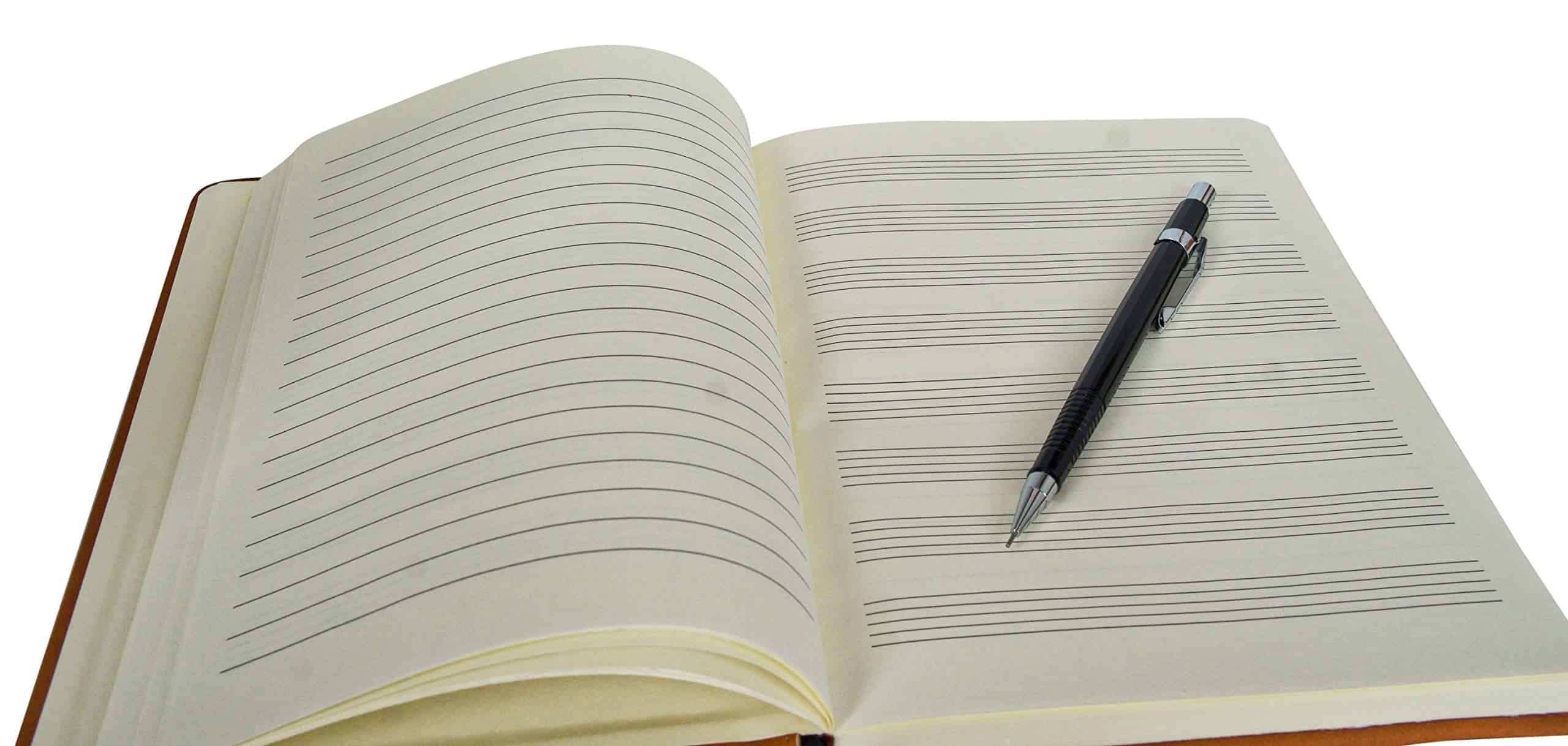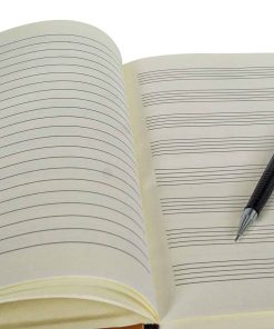 La página derecha consta de 8-9 pentagramas, perfecta para escribir ideas musicales, mientras que la página izquierda es papel rayado normal para letras, poesía y más. 180 páginas, tamaño A5 (5.8 x 8.3 pulgadas). Sobres incorporados en el interior para partituras, notas, etc.