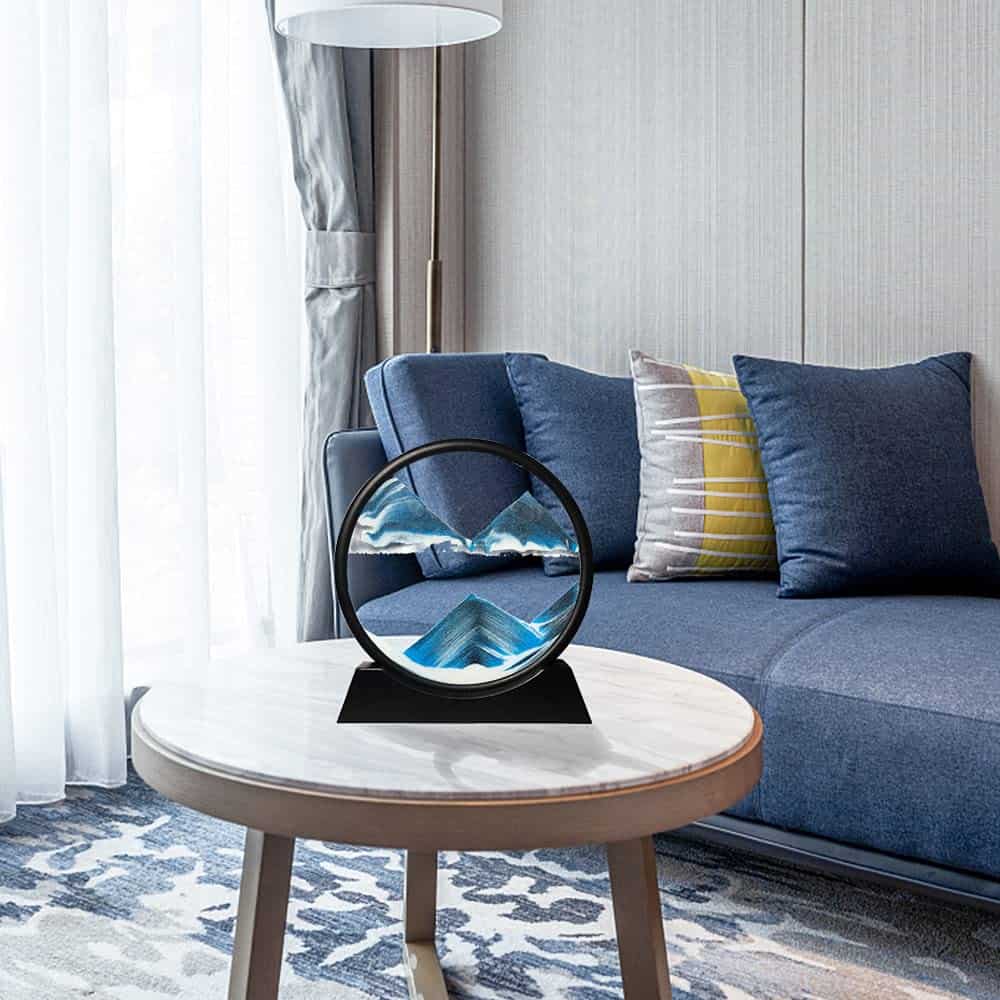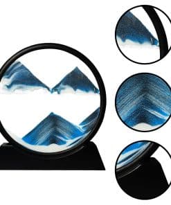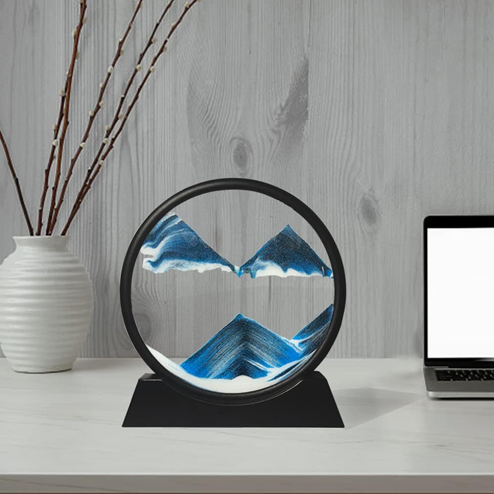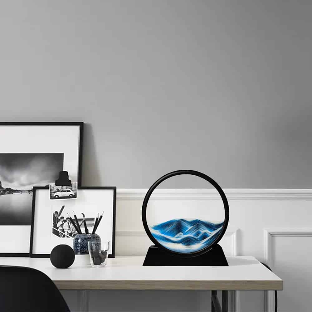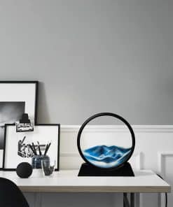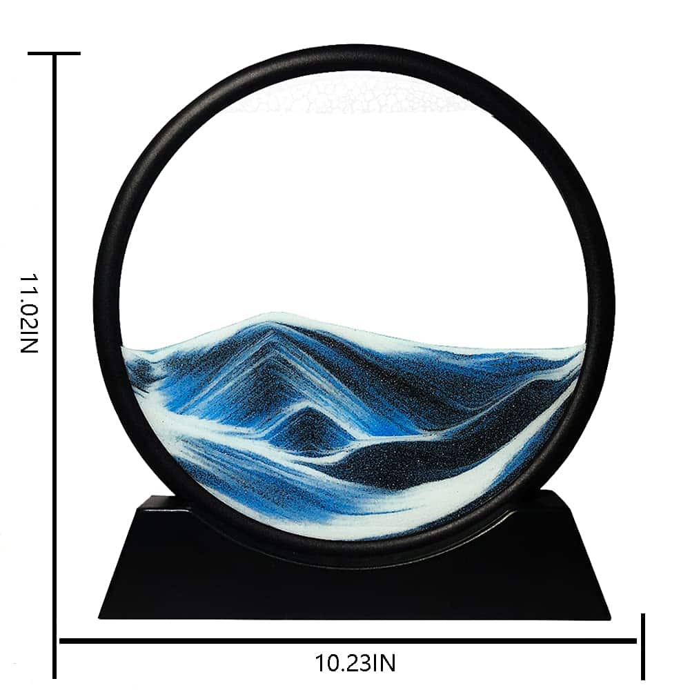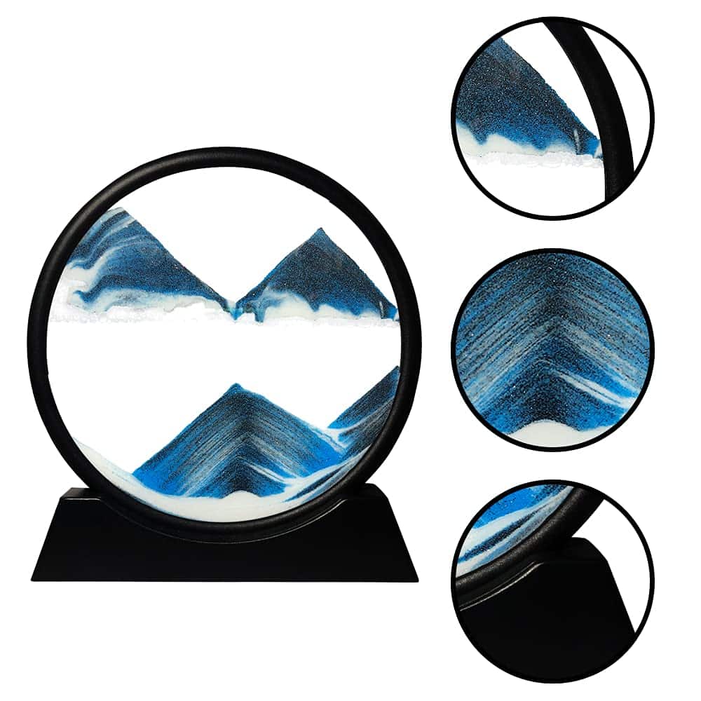 Cuadro de arte de arena en movimiento con efecto hipnótico. Ideal para decorar tu hogar u oficina con un toque creativo y relajante. Con arena azul que simula el movimiento del mar, este arte de escritorio es perfecto para regalar a tus seres queridos o para animar cualquier fiesta. ¡Atrévete a añadir un toque de originalidad a tu vida con este increíble cuadro de arte en movimiento!