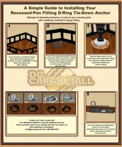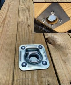 Estos anillos encastrados de montaje en forma de cassete están hechos específicamente para cuando no puedes tener un anillo en D inactivo sobresaliendo del piso de tu vehículo, tropezando a la gente y obstruyendo la colocación de la carga. La plataforma encastrada cuadrada se atornilla en tu piso de madera; el anillo en D queda nivelado en la plataforma cuando no se usa y puede levantarse hacia arriba para usarse como un anclaje de amarre de carga.