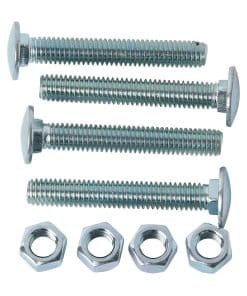 3. El accesorio empotrado tiene cuatro agujeros pre-perforados – uno en cada esquina. Son agujeros cuadrados, aseguran la compatibilidad con los pernos de tipo carro provistos. Una vez que hayas creado el agujero necesario, coloca el accesorio en su lugar y perfora a través de los agujeros de perno; luego sostén una placa de montaje en la parte inferior de la superficie de montaje (tu remolque, cama de camión, o mesa) e inserta los pernos apropiados en los 4 agujeros, asegurándolos con tuercas de bloqueo y arandelas.
