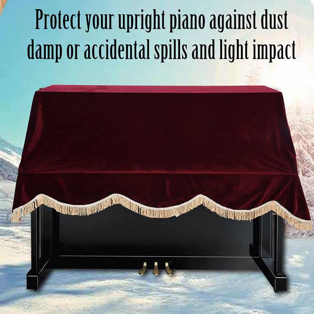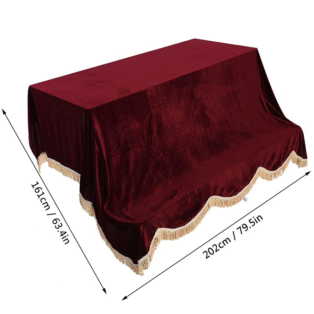 Proteja su piano vertical contra el polvo, la humedad o derrames accidentales y el impacto ligero. Hecho de tela de pleuche suave, resistente al desgaste y duradera, lavable y resistente al color. La cubierta tiene un hermoso borde de borlas, lo que hace que su piano se vea más elegante y atractivo, buena decoración para su piano. Diseño de color clásico, no mostrará fácilmente la suciedad, resistente a la suciedad. Aproximadamente 202 cm de longitud, 161 cm aproximadamente de ancho, buena cubierta preparada para su piano.