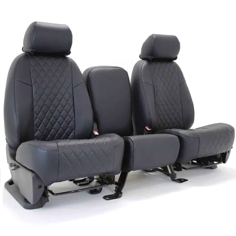 Nuestras Cubiertas de Asientos Personalizadas de Cuero Sintético están hechas de vinilo de alta calidad, un material tan suave y flexible como el cuero real. Uno de los principales beneficios del cuero sintético es su alta durabilidad y facilidad para limpiar. Estas fundas de asiento encajan tan bien que rivalizan con el tapizado original de su vehículo. Los diseños de precisión garantizan una funcionalidad completa del asiento en todas las filas, además de cubiertas para reposacabezas, apoyabrazos, consolas y bolsillos para mapas (según su vehículo). Ya sea que esté trabajando para mantener sus nuevos asientos nuevos, para mejorar el estilo de su interior o para revivir un juego de asientos viejos y cansados, ¡tenemos cubiertos sus asientos! Cortados con patrones de precisión y materiales de alta calidad, las cubiertas de cuero sintético de Coverking mantienen sus asientos con estilo y protegidos por kilómetros. Construcción de tres capas para estilo, confort y durabilidad. Fabricado a medida según las especificaciones exactas de sus asientos; se pueden instalar en menos de 30 minutos.
