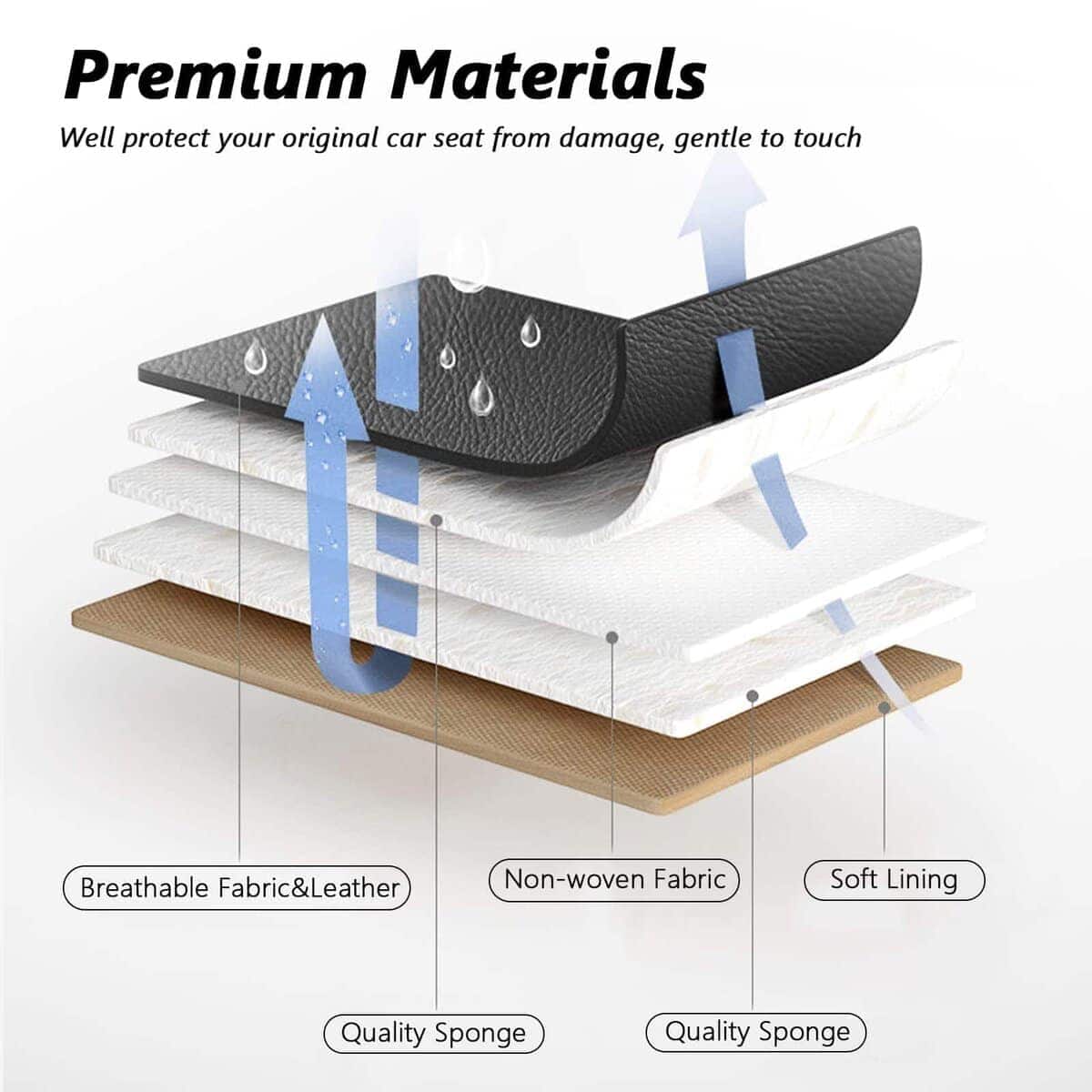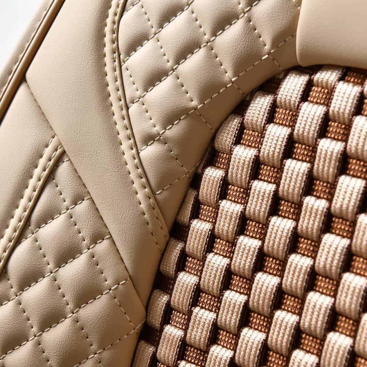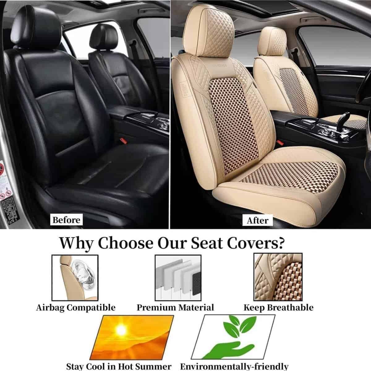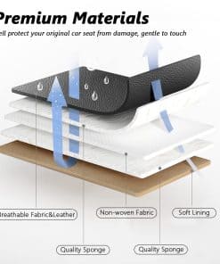 La construcción de cuero sintético duradero y secciones centrales de tela tejida especial proporciona una protección acolchada suave para sus asientos, al tiempo que el diseño de almohadilla de tracción evita el deslizamiento. Fáciles de limpiar, simplemente pase un paño húmedo para mantenerlas impecables.