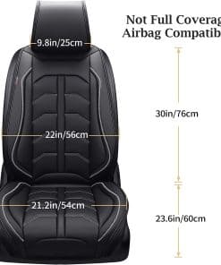 Cubierta de Asiento Delantero de Coverado: Obtenga nuestras fundas de asiento delantero de alta calidad que son elegantes, funcionales y duraderas para proteger los asientos de su automóvil. Hechas de cuero sintético impermeable premium, estas fundas ofrecen una gran comodidad mientras agregan un toque de estilo a su interior. Nuestras fundas de asiento delantero se adaptan a la mayoría de los coches, SUVs, furgonetas y camiones, y son compatibles con airbags, cinturones de seguridad y reposabrazos. Con un fondo de silicona antideslizante y correas con hebillas fijas, estas fundas permanecen en su lugar sin desplazarse. Proteja sus asientos del desgaste, manchas, suciedad, pelo de mascotas y rayos UV con nuestras fundas de asiento de alta calidad. Fáciles de limpiar con una toalla, ofrecen una forma rentable de mantener sus asientos como nuevos. Cada paquete incluye 2 fundas para asientos delanteros y un manual detallado para una fácil instalación. Elija entre varios colores disponibles y defina un nuevo aspecto para su automóvil.
