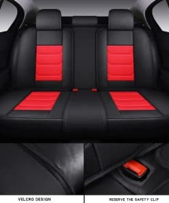 La cubierta de asiento Isen-CoverAuto de piel sintética de cobertura total incluye tanto las cubiertas delanteras como las traseras para los 5 asientos de su automóvil, camioneta SUV o camión. Con un diseño negro y rojo llamativo, esta cubierta de asiento proporciona un ajuste universal para una amplia gama de marcas de vehículos, incluidos Ford, Chevrolet, Buick, Volkswagen, Toyota, Honda, Nissan, Mazda, Mitsubishi, Hyundai, Kia y Jeep, entre otros. Además de ser compatible con la mayoría de los automóviles, SUVs y camiones, este protector de asiento para automóvil tiene un envolvimiento excepcional con los asientos del vehículo, maximizando la protección contra daños. Incluso en casos de accidente, las bolsas de aire seguirán funcionando correctamente gracias al diseño sin obstrucciones. Fabricado con piel sintética resistente al agua, esta cubierta de asiento es fácil de limpiar con un paño húmedo y requiere un mantenimiento similar al de un bolso de cuero. La durabilidad está garantizada mediante el uso de una piel sintética de alta calidad que es resistente a daños, roturas y quemaduras, gracias a la presencia de retardantes de fuego en el material. Para facilitar la instalación, el paquete incluye un video de instrucciones paso a paso y un manual detallado. Además, nuestro equipo de atención al cliente está disponible para brindar asistencia ante cualquier pregunta o inquietud que pueda surgir. Aproveche la versatilidad, la durabilidad y el servicio postventa de la cubierta de asiento Isen-CoverAuto y mantenga sus asientos protegidos en todo momento.