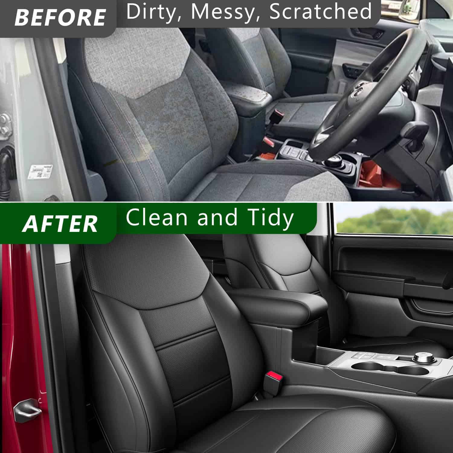 1. Ajuste personalizado: El protector de asiento está diseñado para que coincida perfectamente con el modelo de coche original compatible con el Ford Maverick 2022 2023 2024 2025 modelo XL, XLT, LARIAT, proporcionando un ajuste personalizado que cubre el asiento de manera efectiva. Necesitará confirmar su año y cantidad de modelo antes de comprar.