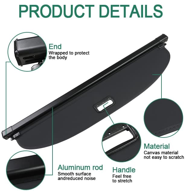 1. Compatibilidad: Esta cubierta de privacidad de pantalla de carga retráctil se ajusta perfectamente a Lexus RX RX350 RX450h 2016-2022 (No apta para RX350 L o RX450h L). 2. Material: Nylon duradero e impermeable con estructura de aleación de aluminio fuerte. Capacidad de carga fuerte fabricada con un marco de aluminio de alta resistencia y una cubierta de resorte con varillas de refuerzo a lo largo de sus bordes para una mayor estructura y durabilidad. 3. Función: Protege tus objetos de valor y tu privacidad de ojos curiosos, ayuda a proteger tus objetos de valor de los dañinos rayos UV y proporciona más espacio de almacenamiento. 4. Fácil de instalar: Instalación rápida y fácil, no se necesitan taladros ni herramientas. Diseñado para acoplarse directamente al agujero original del automóvil para instalar y no dañar tu coche. 5. AVISO IMPORTANTE: Antes de realizar el pedido, por favor verifica el modelo de tu coche en el Sistema de Filtro de Ajuste en la esquina superior izquierda. La información de compatibilidad proporcionada es solo de referencia. Asegúrate de que coincidan los números de pieza exactos entre esta parte y la parte que estás reemplazando.