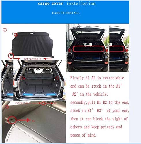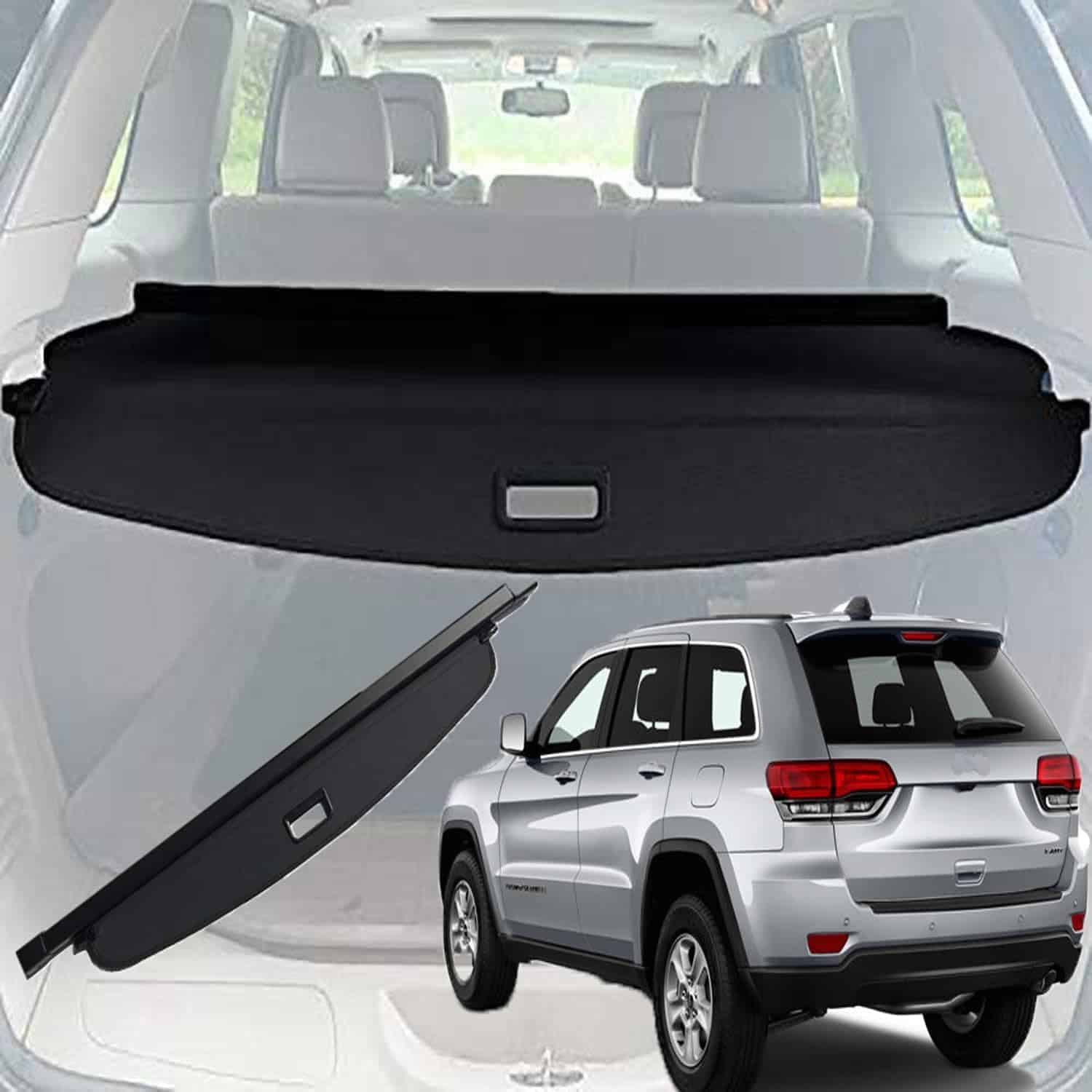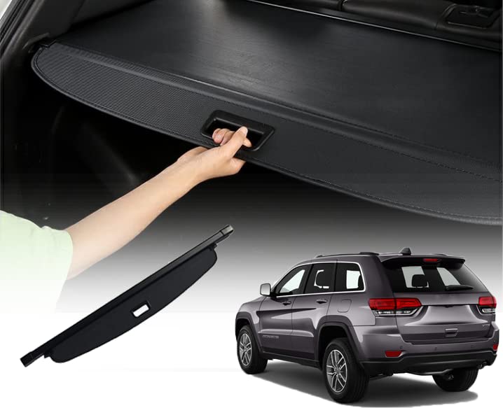 Cubierta de carga kaungka diseñada para adaptarse a Jeep Grand Cherokee de los años 2011 a 2021. Esta cubierta se monta en los paneles traseros y proporciona protección para sus pertenencias. La cubierta es retráctil para un fácil acceso y extracción de la carga, y además, oculta la carga para brindarle mayor tranquilidad. Tenga en cuenta que esta cubierta no es compatible con Jeep Cherokee.