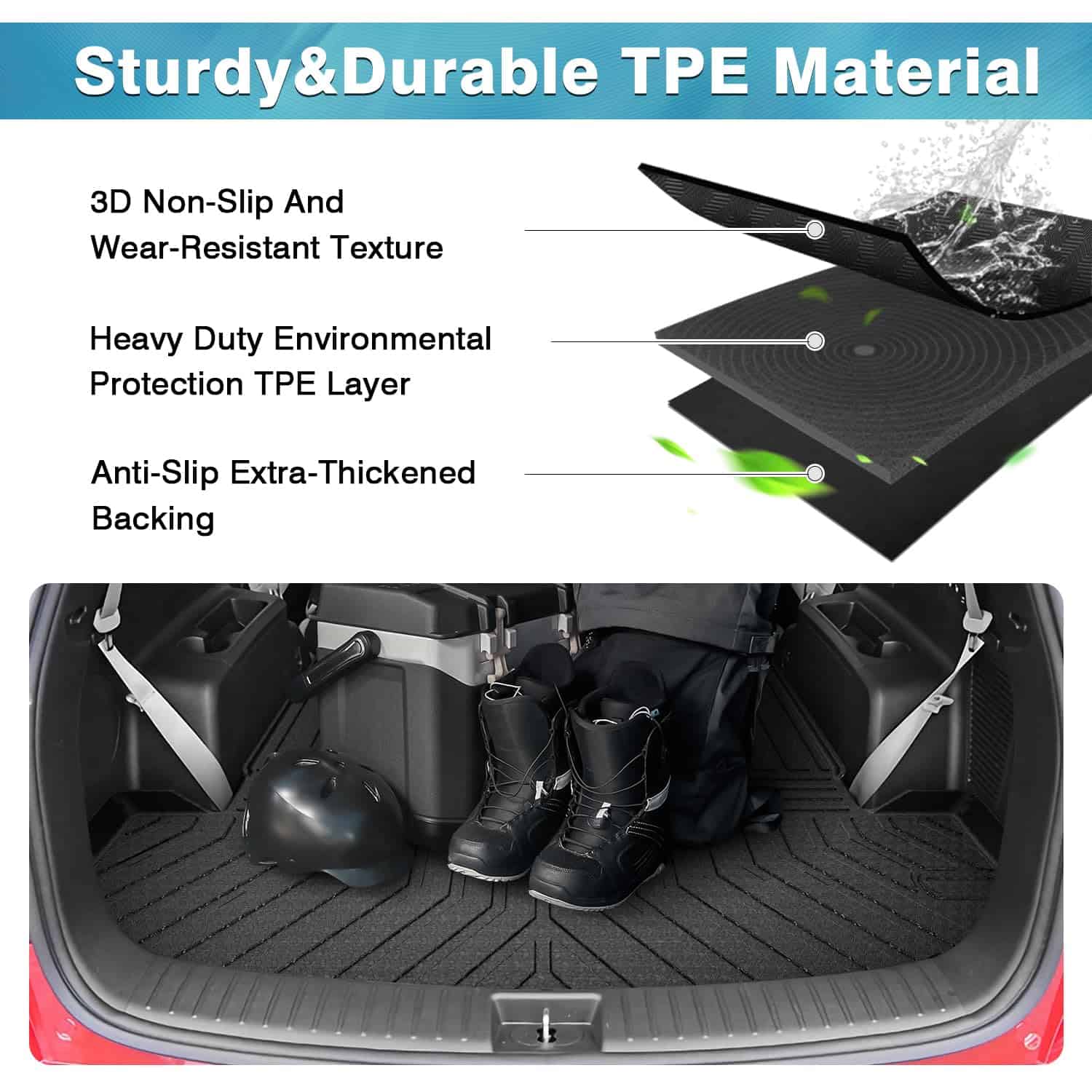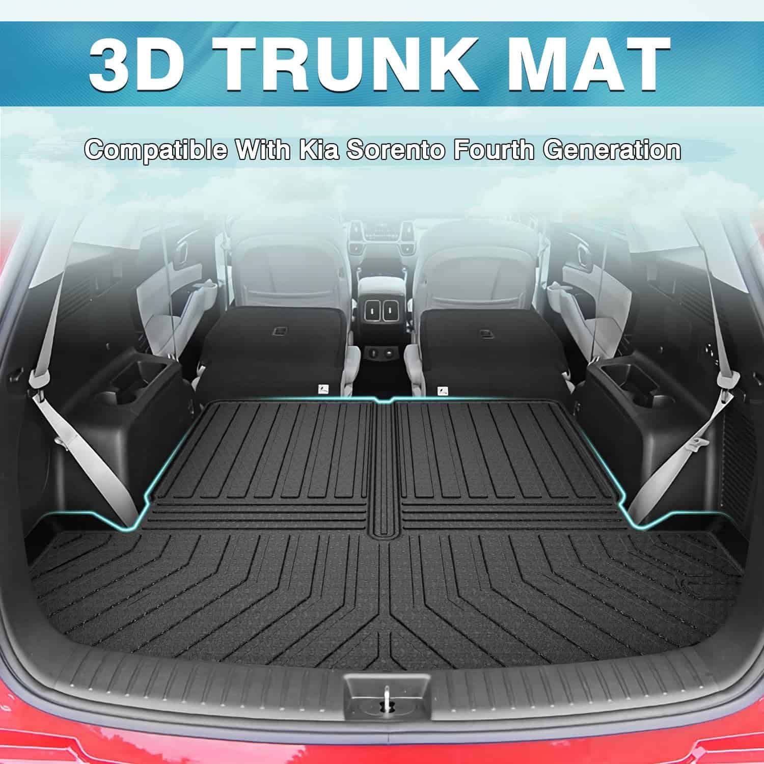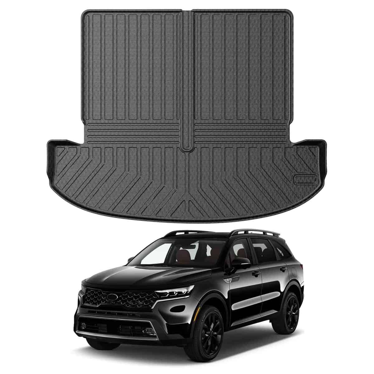 La cubierta de carga para Kia Sorento de Mixsuper se adapta a los modelos 2021-2025 detrás de los asientos de la 2da fila, ofreciendo una protección completa para el maletero. Fabricada con materiales de alta calidad y seguros TPE, esta alfombrilla es resistente al desgaste, antideslizante y libre de olores. Su diseño único con una superficie texturizada y canales especiales atrapa eficazmente arena, agua, barro, suciedad, lluvia y sedimentos, evitando que se ensucie o raye la alfombra original del vehículo. Los bordes elevados evitan que líquidos y escombros alcancen el suelo original, protegiendo así el interior de tu automóvil de daños. Además, su diseño resistente a las manchas y a la intemperie facilita la limpieza con un paño húmedo o enjuagándolo directamente con agua, manteniendo la alfombrilla como nueva de forma rápida y sencilla.
