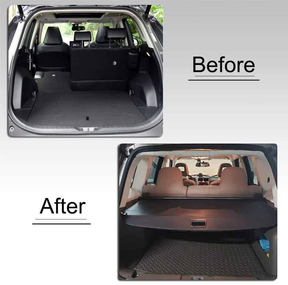 Cubierta de carga específicamente diseñada para Jeep Patriot/Compass 2008-2016. Esta protector retráctil de maletero se instala de forma segura en los paneles traseros para mantener tus pertenencias protegidas de los rayos UV dañinos, al mismo tiempo que ofrece un fácil acceso y extracción de la carga. Además, al ocultar la carga, proporciona una medida adicional de seguridad y tranquilidad. Diseñado para adaptarse perfectamente y sin dejar espacio entre los asientos traseros y la cubierta.