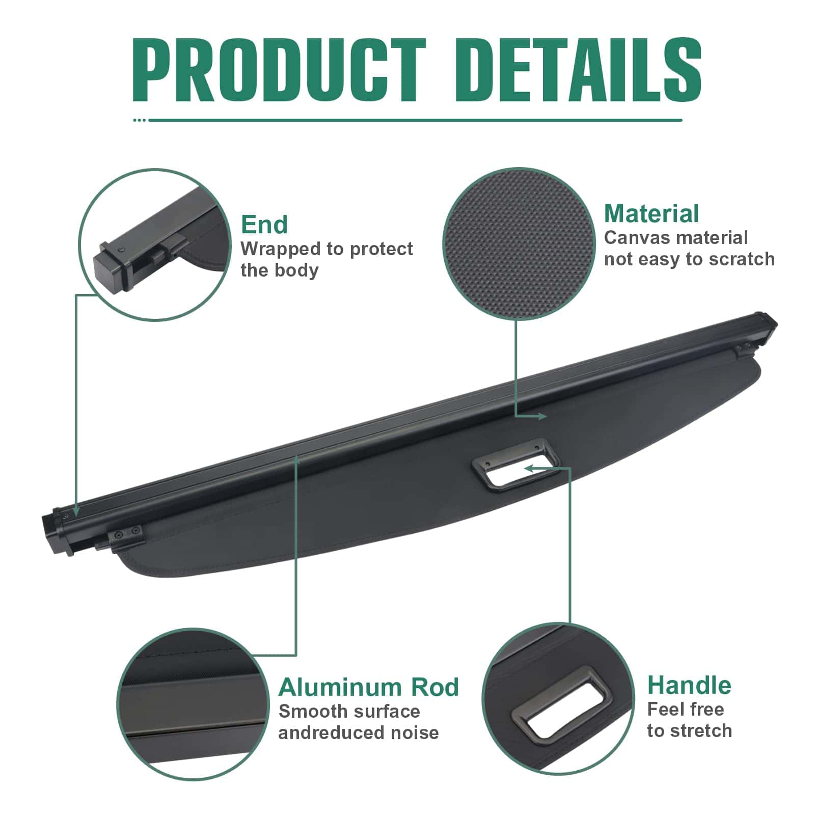 Cubierta de carga para maletero trasero SAOKNCE diseñada específicamente para Ford Escape 2020 2021 2022. Esta cubierta de carga impermeable y retráctil proporciona una protección adicional para sus pertenencias contra daños por los rayos UV. El ajuste perfecto y la instalación simple garantizan una experiencia sin complicaciones. Hecho de material de nylon duradero y resistente al agua, esta cubierta es fácil de limpiar y ofrece una solución segura para ocultar sus pertenencias bajo ella. El diseño retráctil permite un uso y extracción fáciles, proporcionando comodidad al usuario. El contenido del paquete incluye 1 cubierta de carga. Para cualquier pregunta, no dude en contactarnos, ¡estamos aquí para ayudarlo!