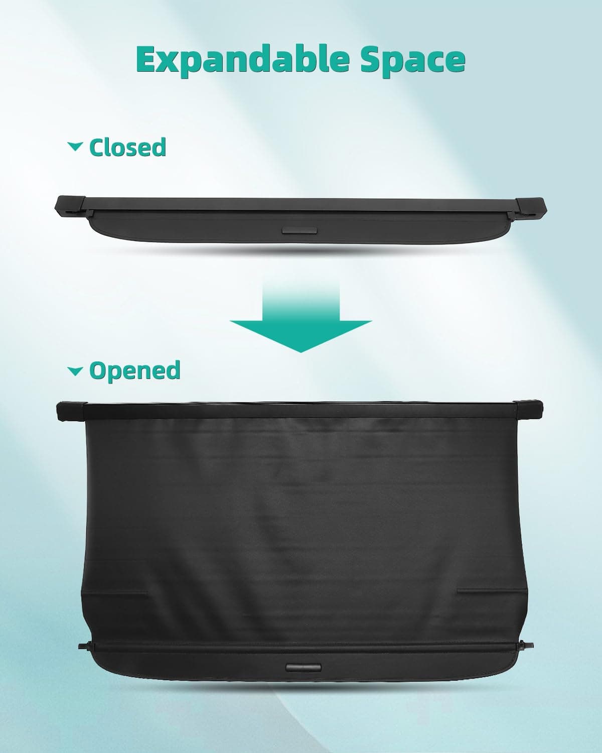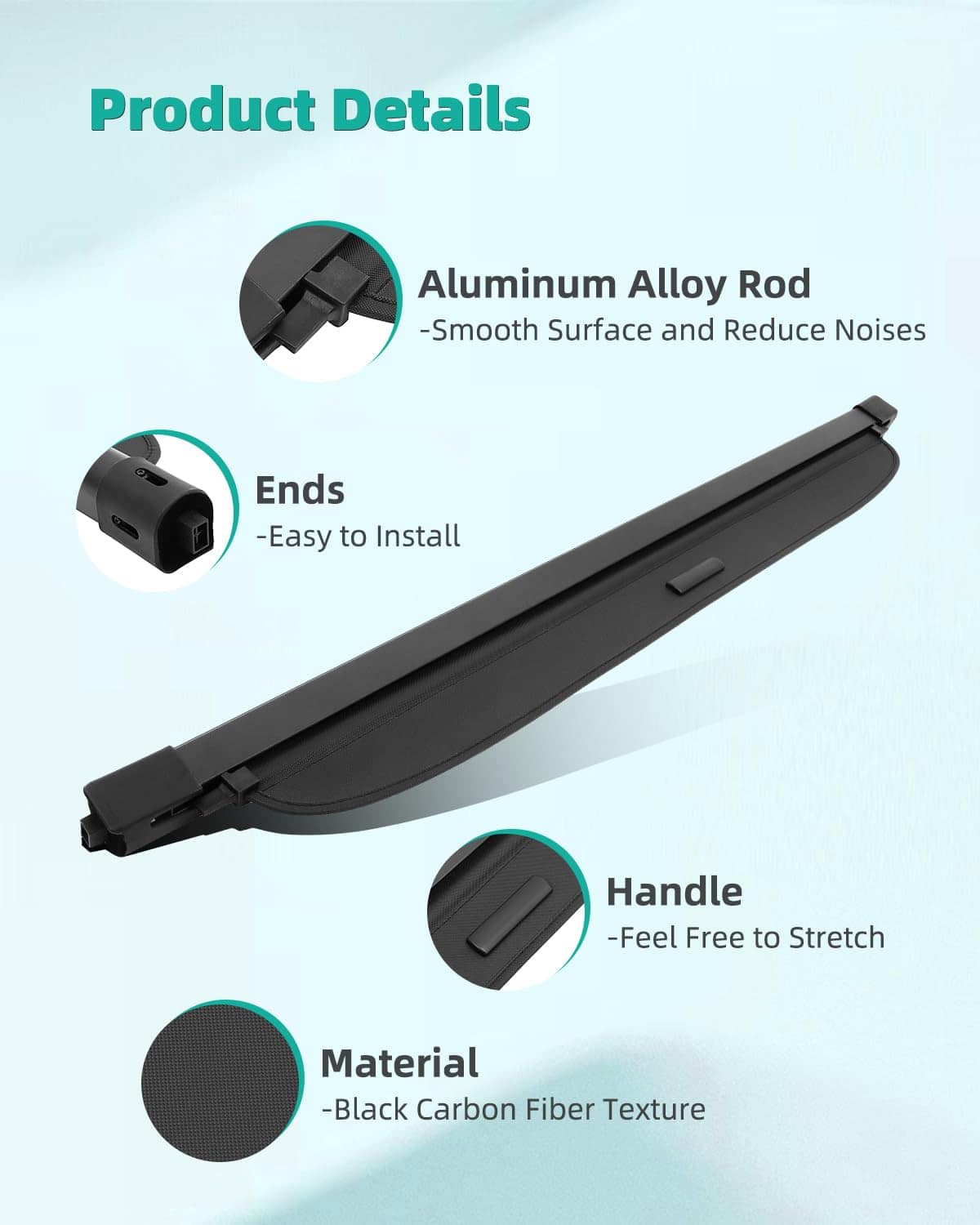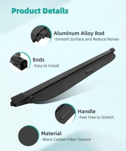 La cubierta de maletero retráctil está construida con un marco de aluminio resistente y PVC duradero, resistente a desgarros y presiones. Además, el algodón insonorizante integrado minimiza los rayones en el interior y reduce el ruido al conducir. Ideal para mejorar la funcionalidad y seguridad. Incluye adaptadores para la mayoría de los automóviles, camionetas y remolques. Por favor, seleccione su vehículo (año/marca/modelo/acabado) en la esquina superior izquierda de la página para confirmar la compatibilidad o consulte la información del vehículo en la descripción.