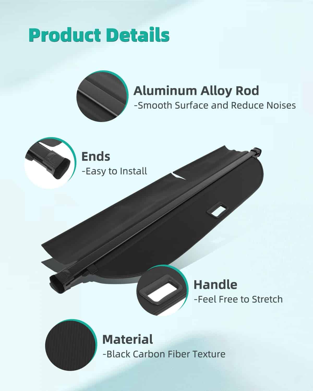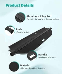 3. Calidad Superior: Construido con un resistente marco de aluminio y durable PVC, la cubierta retráctil para maletero trasero es resistente a desgarros, resistente a la presión y fácil de mantener. Además, el algodón insonorizante integrado minimiza los arañazos interiores y reduce el ruido al conducir. Perfecto para mejorar tanto la funcionalidad como la seguridad.
