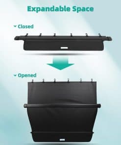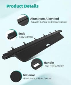 Cubierta de carga SCITOO compatible con el Honda Pilot 3.5L 2016-2022. Proporciona un espacio privado en el maletero para proteger objetos de valor de miradas indiscretas. Construido con un resistente marco de aluminio y duradero PVC, esta cubierta retráctil es resistente a desgarros y presiones, fácil de mantener y cuenta con algodón acolchado para minimizar rayones interiores y reducir el ruido de conducción. La instalación es rápida y sin herramientas, utilizando los ranuras originales del vehículo. Adaptables a la mayoría de los coches, SUVs, camiones y remolques.