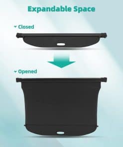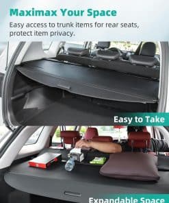 2. Privacidad y espacio: Organizador de maletero que garantiza facilidad de uso. Proporciona un espacio privado debajo de la tapa del maletero para proteger objetos de valor de miradas curiosas. Protege de los rayos UV. El diseño ajustable maximiza el almacenamiento y la tranquilidad al estacionar en calles o entradas.
