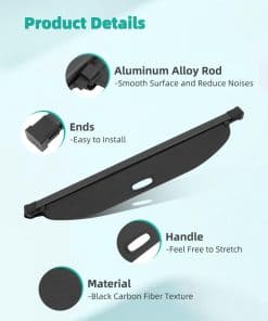 3. Calidad superior: Construido con un marco de aluminio resistente y PVC duradero, la cubierta retráctil de maletero trasero es resistente a desgarros, presiones y fácil de mantener. Además, el algodón insonorizante integrado minimiza los arañazos interiores y reduce el ruido de conducción. Perfecto para mejorar la funcionalidad y seguridad.