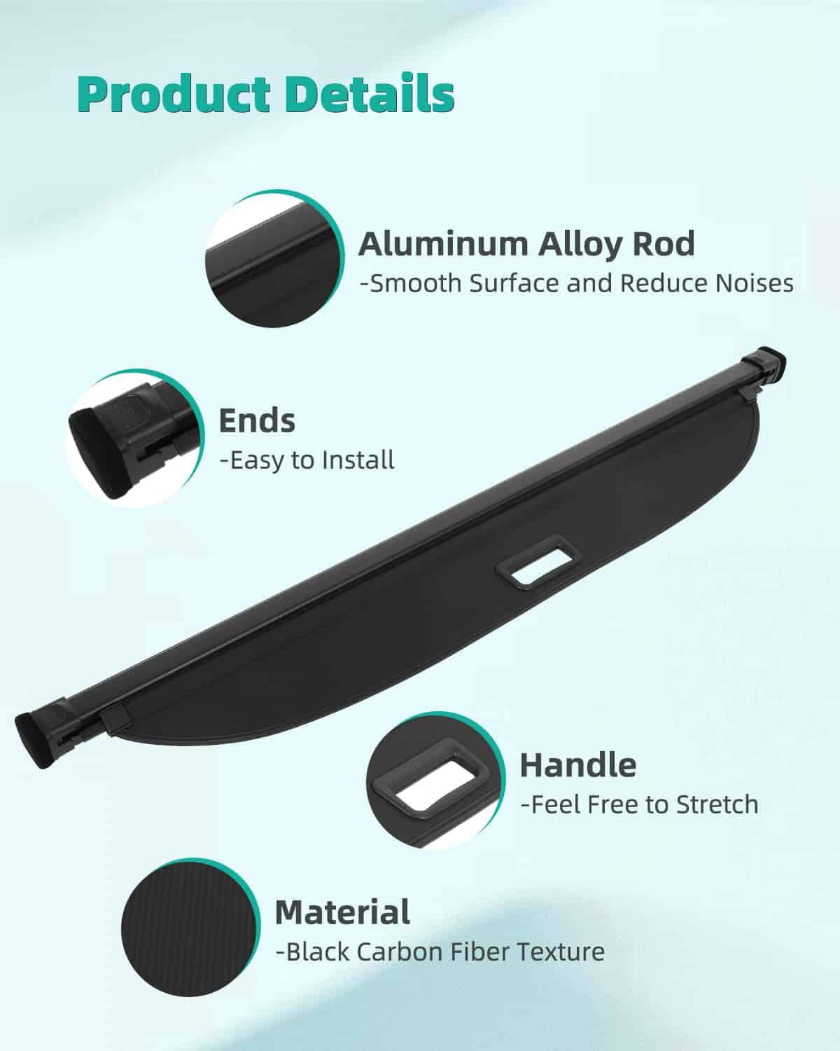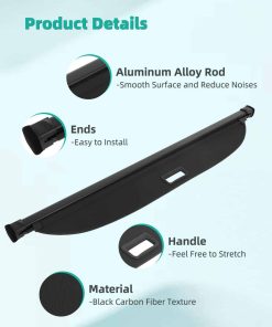 3. Calidad superior. Construido con un marco de aluminio resistente y PVC duradero, la cubierta de maletero trasero retráctil es resistente a las roturas, a la presión y fácil de mantener. Además, el algodón insonorizante integrado minimiza los arañazos interiores y reduce el ruido al conducir. Perfecto para mejorar tanto la funcionalidad como la seguridad.