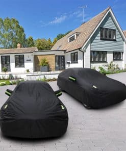Cubierta de coche Abdeck compatible con Jeep Wrangler de 2 puertas fabricado entre 1987 y 2025, incluyendo los modelos JL, JK, TJ y YJ. Esta cubierta de coche exterior completa está hecha de poliéster Oxford transpirable y resistente a desgarros en el exterior, con una capa de revestimiento plateado y una capa impermeable en el interior, lo que la hace adecuada para su uso en ambos lados. El diseño incluye 6 tiras reflectantes fluorescentes para protección nocturna, 4 correas a prueba de viento, un dobladillo elástico ajustable, y 2 bolsillos para los espejos, lo que garantiza un ajuste seguro y una cobertura óptima. Protege su vehículo de la lluvia, los rayos UV, la nieve, el polvo, las deposiciones de pájaros y las huellas de gatos. Adecuado para uso en interiores y exteriores. Incluye una bolsa de almacenamiento para facilitar su transporte y almacenamiento.
