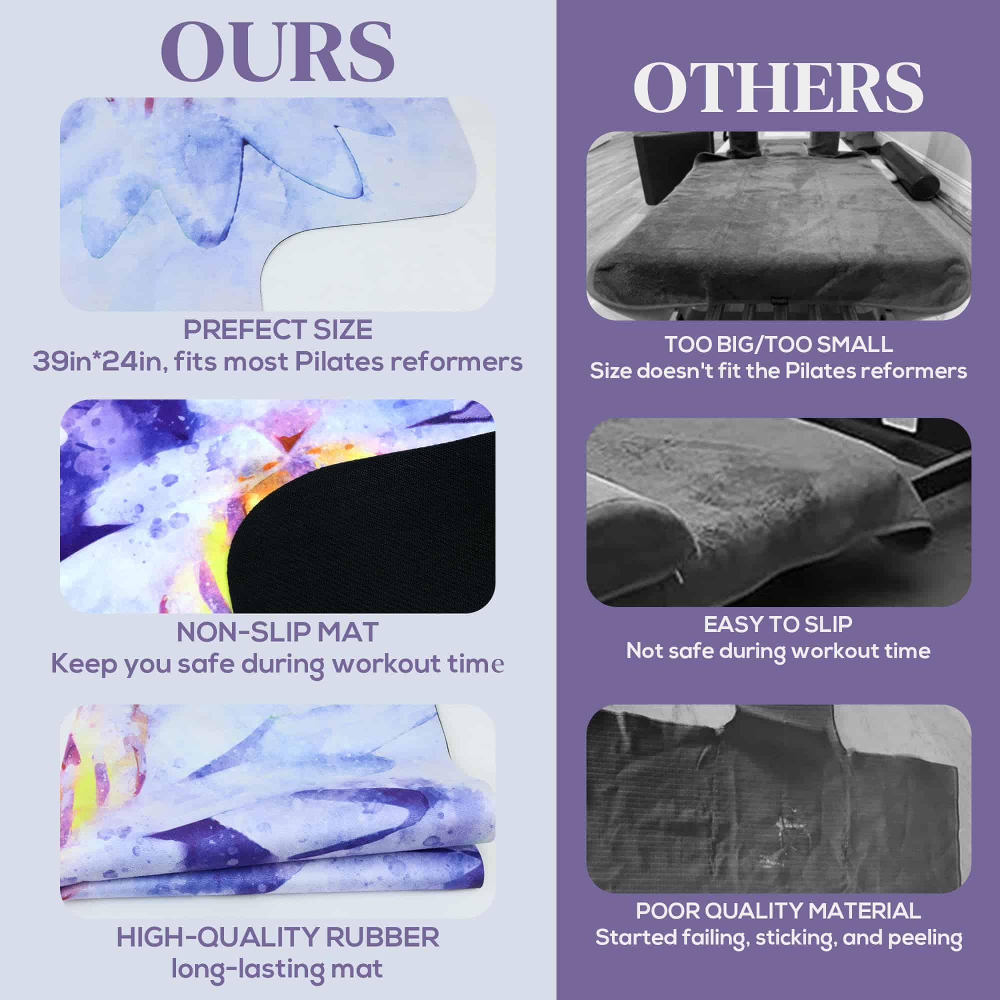 1. PARA PILATES REFORMER: La colchoneta de Pilates reformer de POWLIF se ajusta a la mayoría de las máquinas de Pilates reformer en el mercado. La dimensión general de la colchoneta de reformer es de 39 pulgadas / 100 cm x 24 pulgadas / 61 cm, la parte del cuerpo es de 28 pulgadas / 72 cm x 24 pulgadas / 61 cm, y la parte del reposacabezas es de 11 pulgadas / 28 cm x 7 pulgadas / 18 cm. Usar nuestra colchoneta de Pilates reformer para evitar el polvo y el sudor de otras personas en el equipo de Pilates reformer te dará una experiencia de entrenamiento mejor y más limpia.
