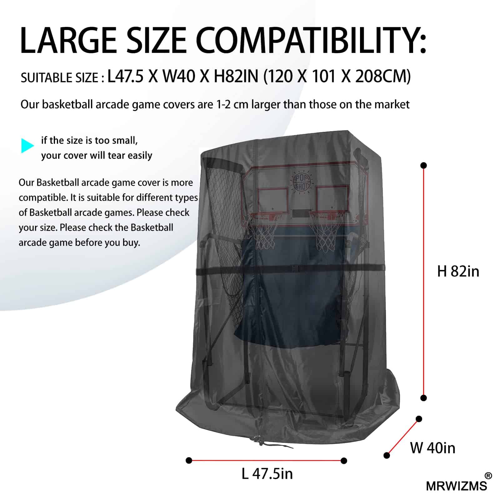 1. Para una mejor experiencia, por favor verifica el tamaño de tu juego de baloncesto arcade antes de comprar para asegurarte de que esta cubierta de juego de baloncesto arcade se ajuste a tu juego de baloncesto arcade.