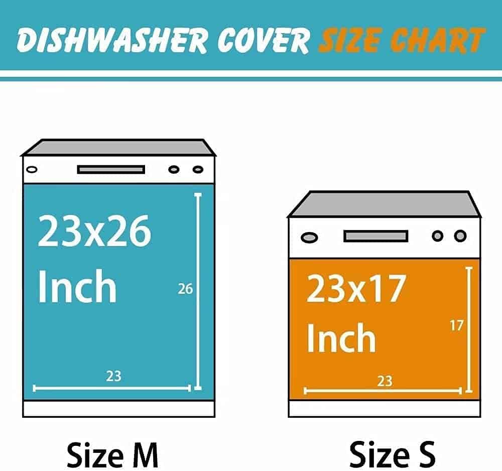 Nuestro Tamaño de Cubierta de Imán de Lavavajillas Impreso: S – 58,5 cm de ancho x 43 cm de alto; M – 58,5 cm de ancho x 66 cm de alto.