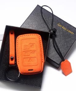 Cubierta de llave de cuero genuino para Land Rover Jaguar, compatible con Evoque Velar Sport Discovery Freelander2 LR4 Land Rover Sport Jaguar XF XJ XE F-PACE F-TYPE. Esta cubierta de llave de cuero de alta calidad está diseñada para brindar protección y estilo a sus llaves de automóvil. Hecho de piel arrugada importada, este porta llaves es suave al tacto y no dejará huellas dactilares. La cubierta de llave es resistente al desgaste y duradera, proporcionando una protección de 360 grados a sus llaves. Viene en cuatro colores diferentes para que pueda elegir el que mejor se adapte a su estilo. El producto se empaqueta cuidadosamente en una caja que incluye el porta llaves, un mosquetón redondo y un cordón. Compre con confianza sabiendo que estamos aquí para ayudarlo con cualquier consulta que pueda tener.