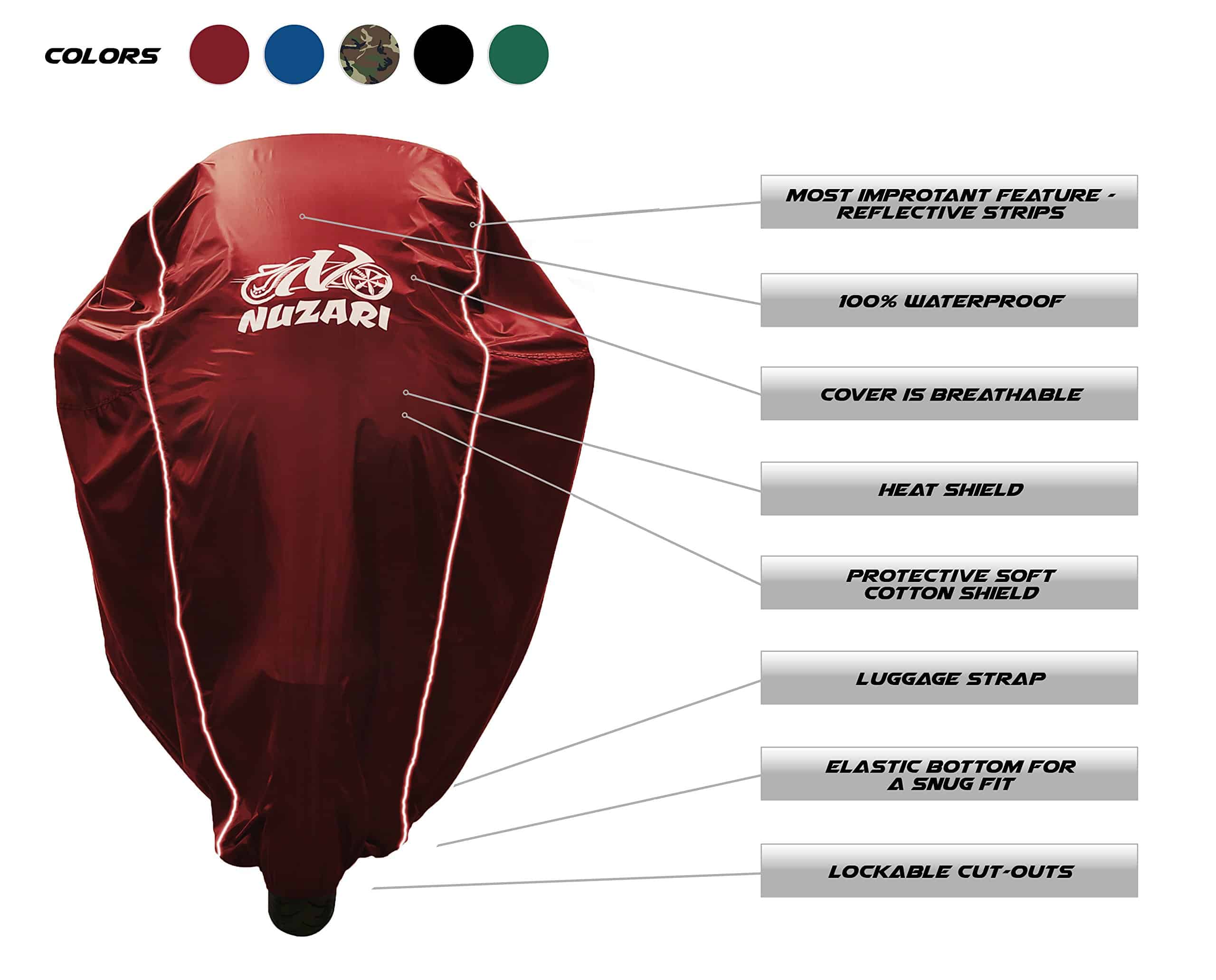 5. LA CUBIERTA DE MOTOCICLETA TRANSPIRABLE con respiraderos de aire impermeables permite que pase el aire evitando volcaduras por fuertes vientos. El producto de NUZARI se adapta perfectamente a las Cubiertas de Motocicleta Harley Davidson y Cubiertas para Motocicletas Harley
