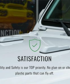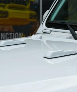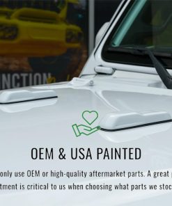 Las cubiertas de parachoques de capó para Jeep Wrangler y Gladiator se han diseñado para un ajuste preciso y sin brechas. Envuelven su parachoques original utilizando pintura resistente a la decoloración.