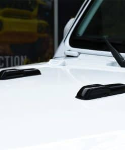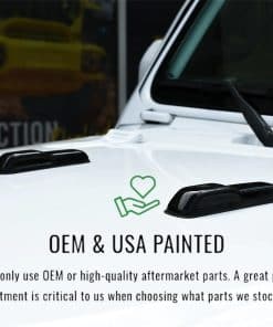 Las cubiertas de parachoques del capó de enganche para Jeep Wrangler y Gladiator están diseñadas para un ajuste preciso y sin brechas. Encapsulan su parachoques original utilizando pintura resistente a la decoloración.