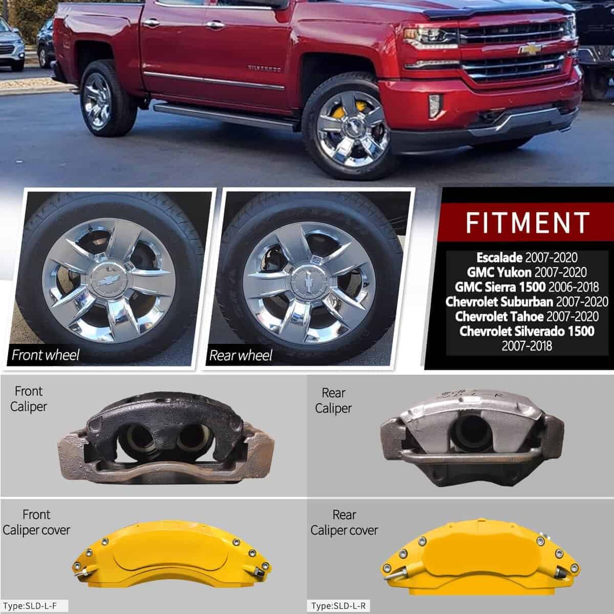 Para desmontar y montar son muy simples, la descripción detallada puede presentar claramente cada paso de la instalación. Las cubiertas de pinza de freno AooA pueden pasar pruebas estrictas de seguridad y calidad, promover la disipación del calor, garantizar la seguridad de la conducción y también cooperar con muchos fabricantes de automóviles. Apariencia: una variedad de modelos, una variedad de colores para que elija, para que su automóvil sea más hermoso. Tipo de ajuste: Específico para el vehículo. Solo para Chevrolet Silverado 1500.