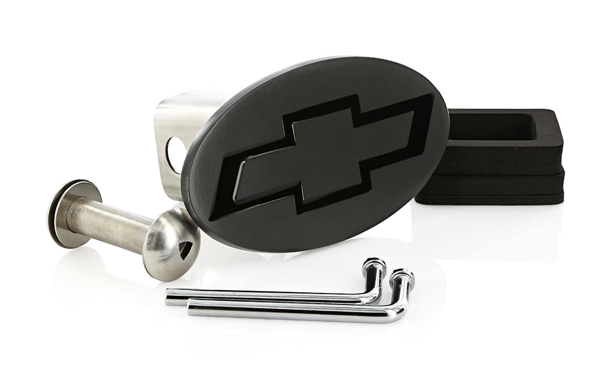Esta es una cubierta de remolque oficialmente licenciada de Chevrolet. Esta cubierta de remolque está hecha de metal sólido. El emblema está hecho de metal con baño de latón. El metal ha sido grabado con precisión y rellenado de color con resina epoxi protegida contra los rayos UV. El poste de remolque de 2 pulgadas y todos sus componentes están hechos de acero inoxidable. El poste de remolque viene con una cerradura de llave allen antirrobo para proteger contra robos. Con la construcción completamente de metal de esta cubierta de remolque, nunca tendrás que comprar otra cubierta de remolque.