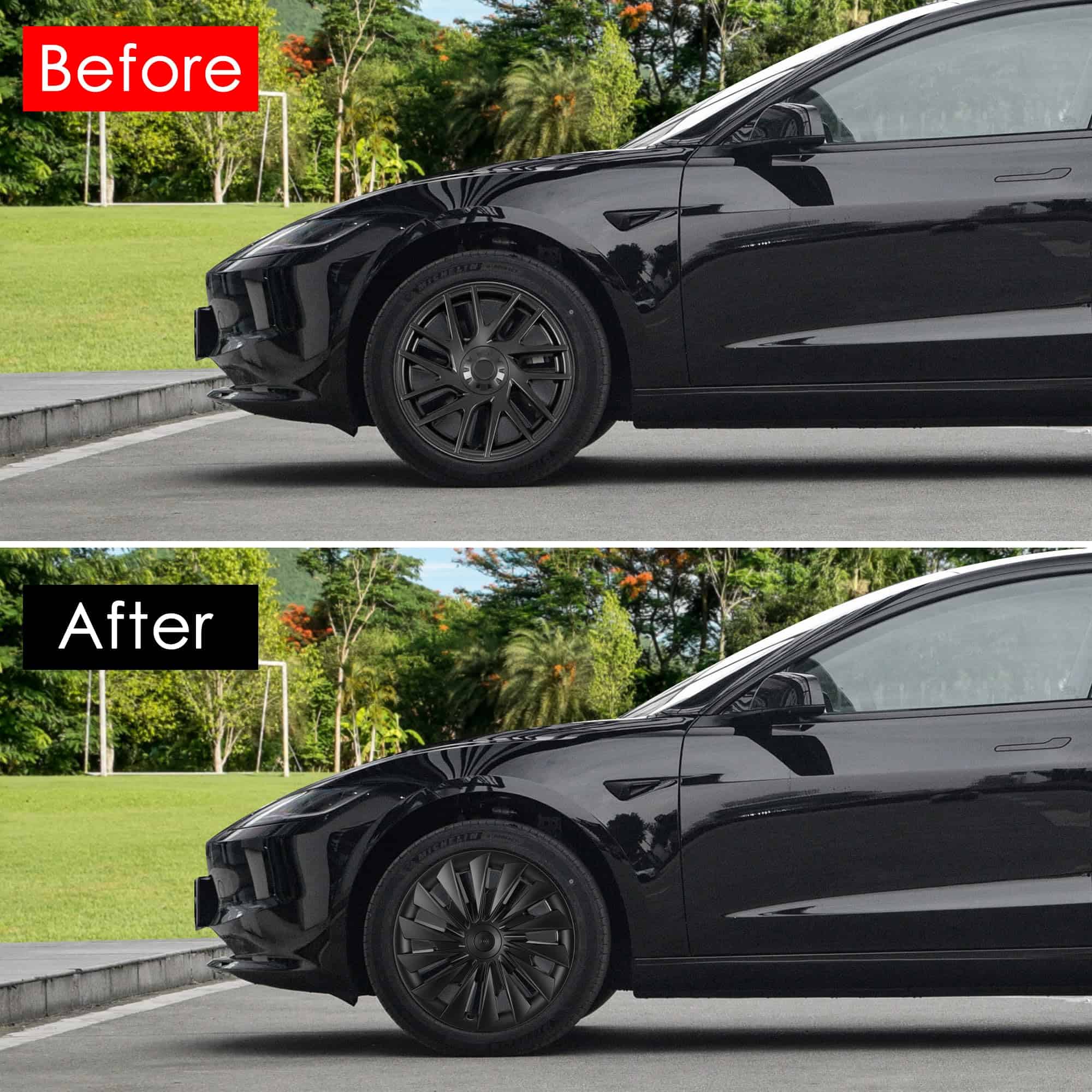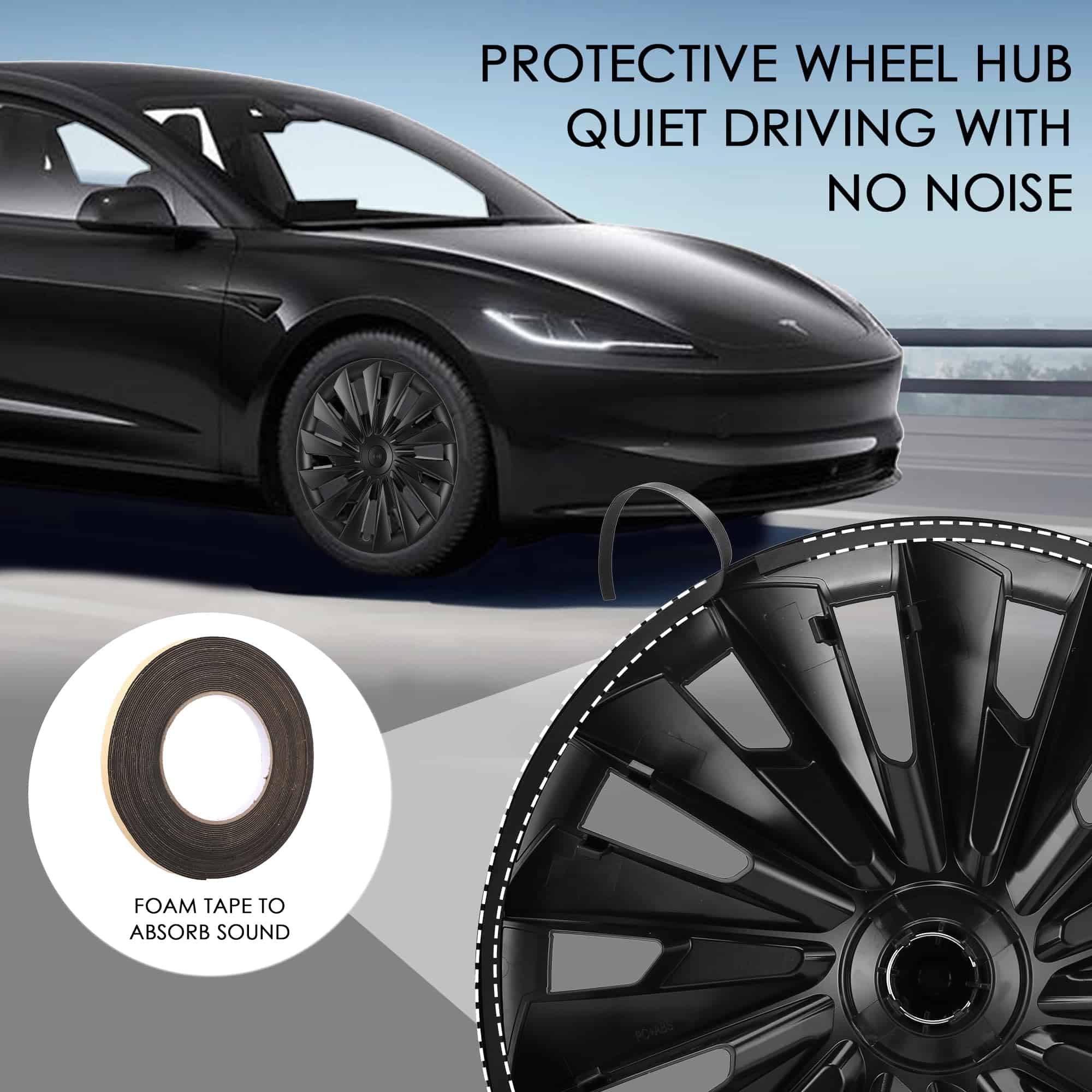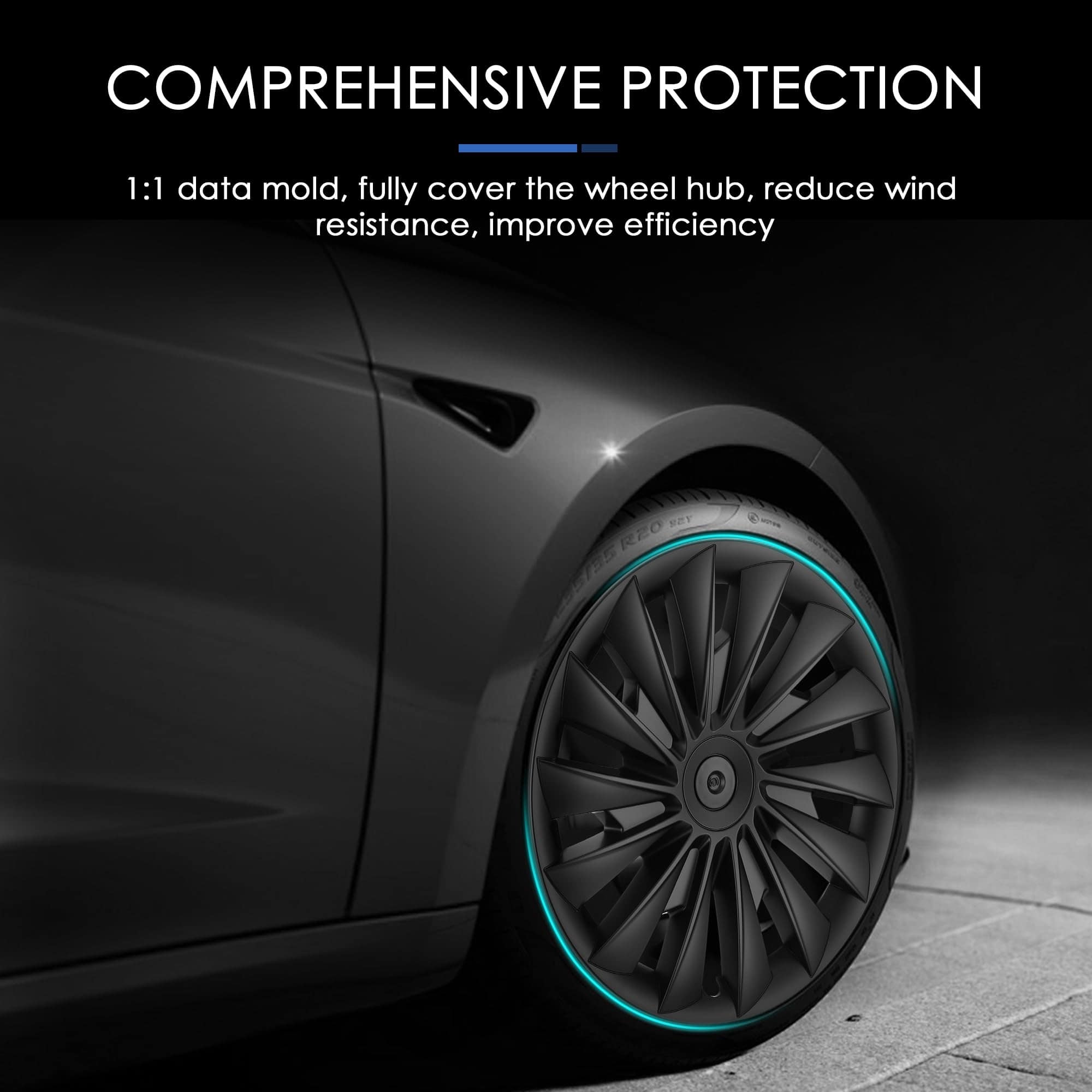 1. Ajuste especial para llantas de Tesla Model 3 Highand 2023+, diseño especial utilizando los datos originales del auto para abrir el molde, ajuste perfecto sin espacio, disfrute de una conducción silenciosa.