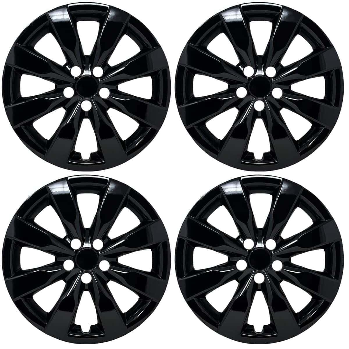 Conjunto de cubiertas de rueda pesadas réplica de fábrica en acabado pintado negro brillante. Diseñado para ser un reemplazo de fábrica para 2014, 2015, 2016 Corolla con ruedas de acero de 16 pulgadas. Las cubiertas de rueda hechas de una resistente ABS plástico cuentan con un acabado negro brillante. Los clips de instalación extra resistentes y el anillo de retención resistente ayudan a proporcionar un ajuste seguro. Lucirán genial en tu vehículo por años. La diferencia principal entre nuestras cubiertas de rueda réplica y las originales es que las originales tienen el logo del fabricante, pero este reemplazo no lo tiene.