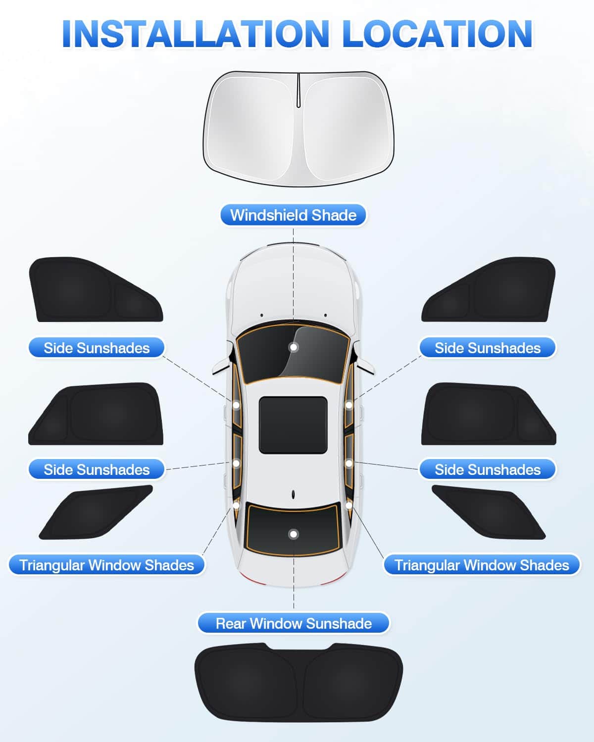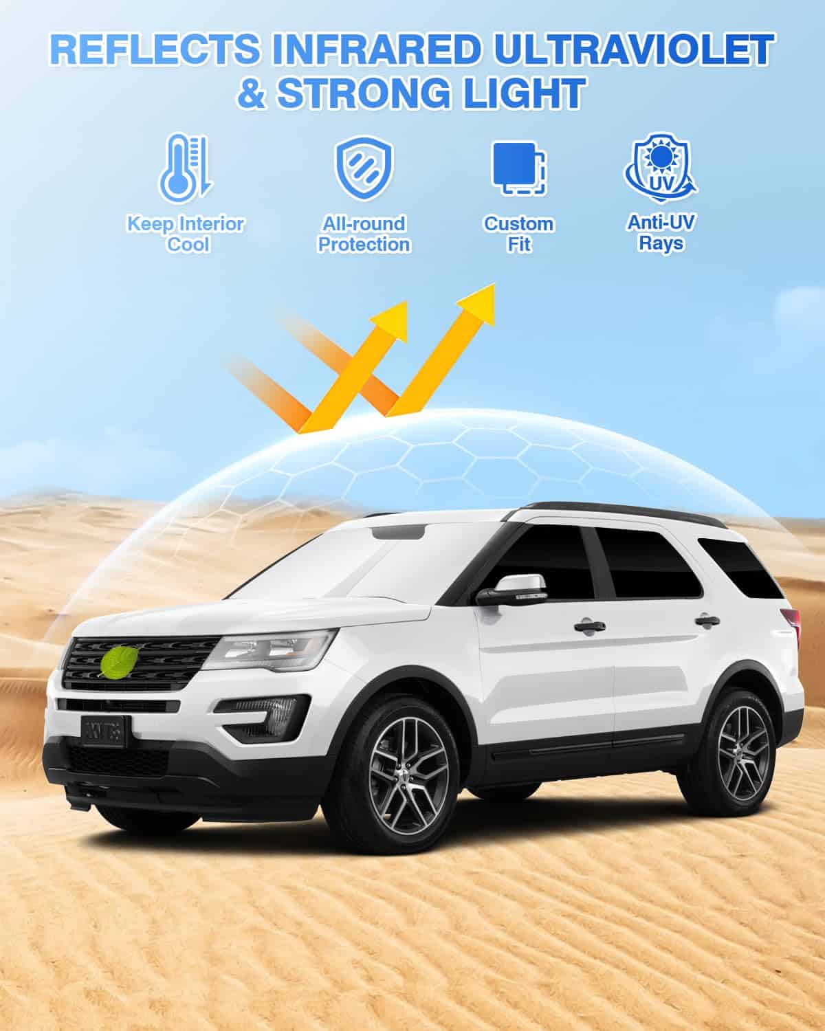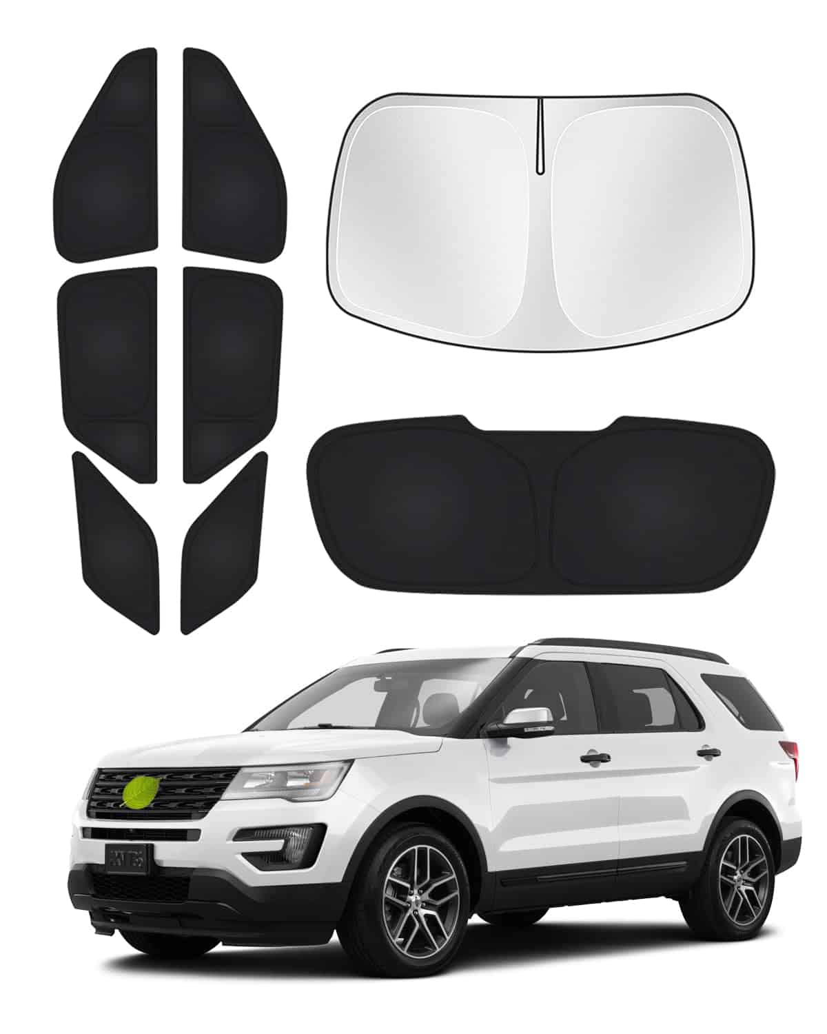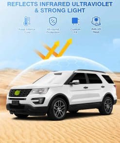 La cubierta de sombra solar Canvcle para parabrisas y ventanas laterales es el accesorio perfecto para tu Ford Explorer 2020-2025. Este set incluye 1 cubierta para parabrisas, 1 cubierta para ventana trasera, 4 bloqueadores de sol laterales y 2 cubiertas triangulares, que ofrecen protección total contra los rayos UV, manteniendo tu coche fresco en días soleados. La tela reflectante de alta densidad bloquea el 99% de la luz solar y el calor, creando un ambiente más oscuro para mayor privacidad durante el camping o viajes. Además, la visera solar plegable proporciona un bloqueo total de la luz y reduce el deslumbramiento del sol, perfecta para dormir en tu coche o descansar durante el día. Fácil de instalar y quitar, este set de cubiertas de sombra solar es un accesorio indispensable para tu coche.