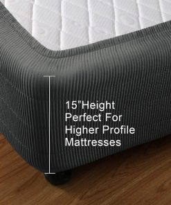 2. Ajuste Inteligente y Elástico: Con tecnología de alta elasticidad que se ajusta alrededor de tu somier, brindando un aspecto ajustado y limpio. El ancho de la cubierta de somier King es de 54» a 76», la longitud es de 56» a 80», la profundidad es de 4» a 16». Sin preocupaciones de que se rasgue el elástico de la tela como las faldas de cama envolventes.