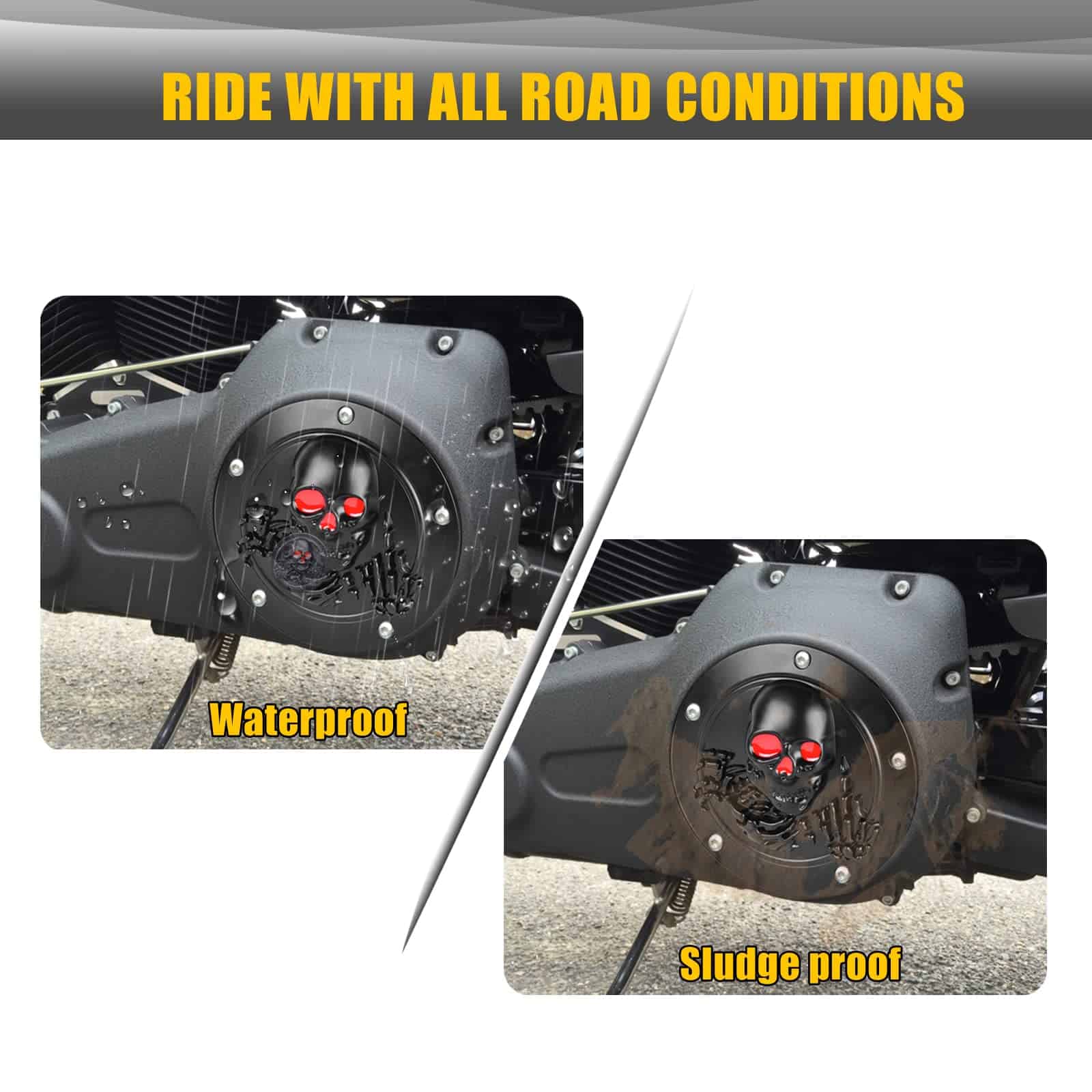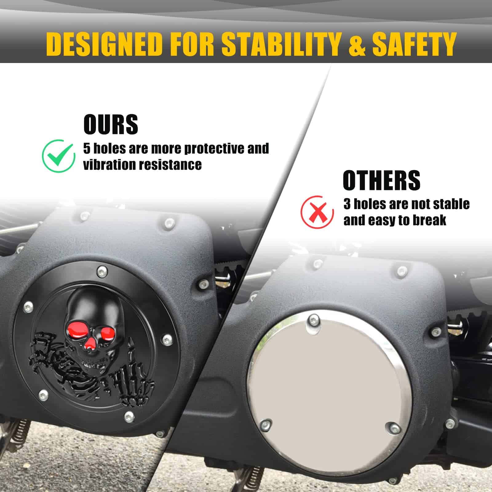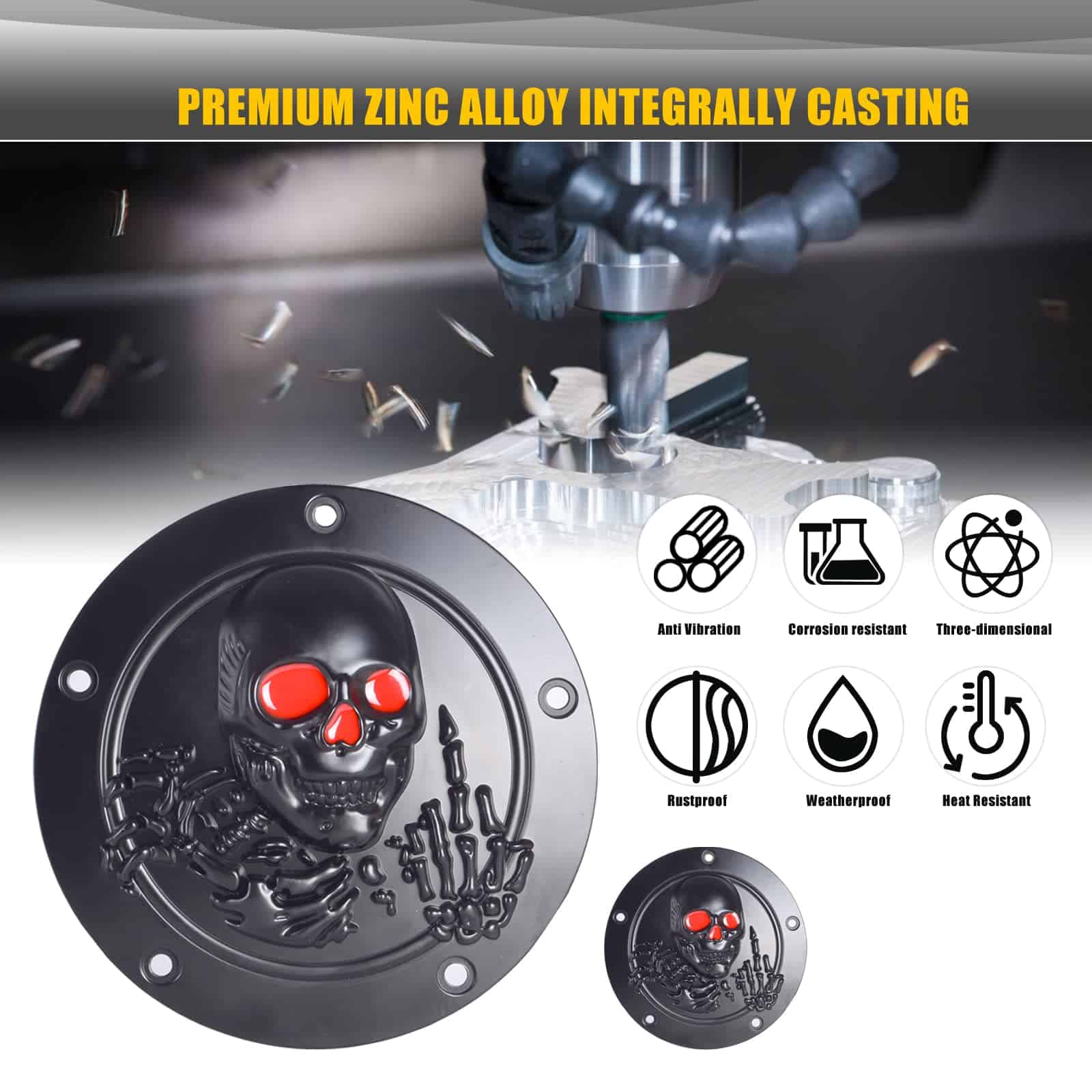 Cubierta de temporizador y puntos derby de calavera 3D con 5 orificios para Harley 1999-2014 Big Twin Cam EVO Touring Road King Electra Glide FLHR FLHX FXST Dyna. Diámetro de la cubierta del temporizador: 7.2, diámetro de la cubierta de puntos: 2.9. Perfecto para modelos Twin Cam con patrón de pernos de 5 orificios. Protege el funcionamiento del embrague de tu motocicleta de polvo y suciedad. Fácil de instalar en 5 minutos sin modificaciones.