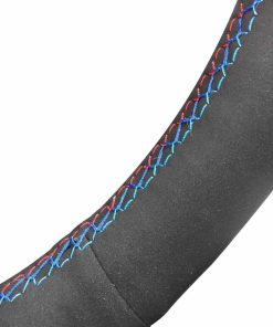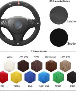 Cubierta de volante MEWANT para BMW 1 Series E81 E82 E87 E88 2008 2009 2010 2012 2013 / 3 Series E90 E91 E92 E93 2006 2007 2008 2009 2010 2011 / M3 E90 E92 E93 2008 2009 2010 2011 2012 2013. La instalación es sencilla, no es necesario eliminar el volante o el airbag. Incluye instrucciones y vídeo de instalación paso a paso. Diseño personalizado: gamuza negra con marcador rojo y costura azul claro, azul y roja; la cubierta personalizada de MEWANT se ajusta perfectamente al volante, como el OEM.