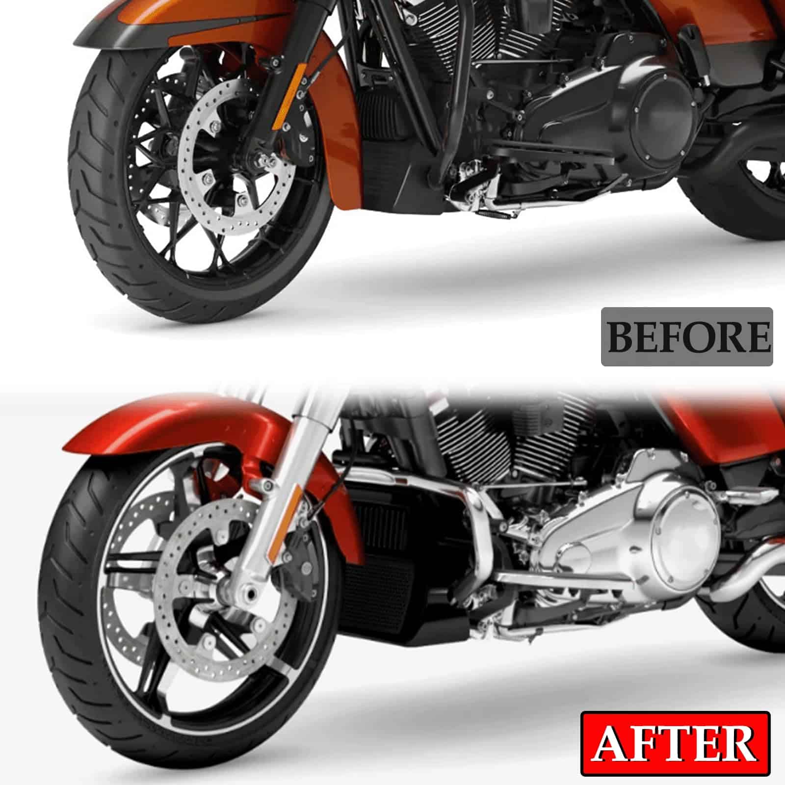 COMPATIBILIDAD: Cubierta del Spoiler Frontal del Radiador Inferior Compatible con los Modelos FLHXSE y FLTRXSE ’23 y posteriores y con los Modelos FLHX, FLTRX y FLTRXSTSE ’24 y posteriores.